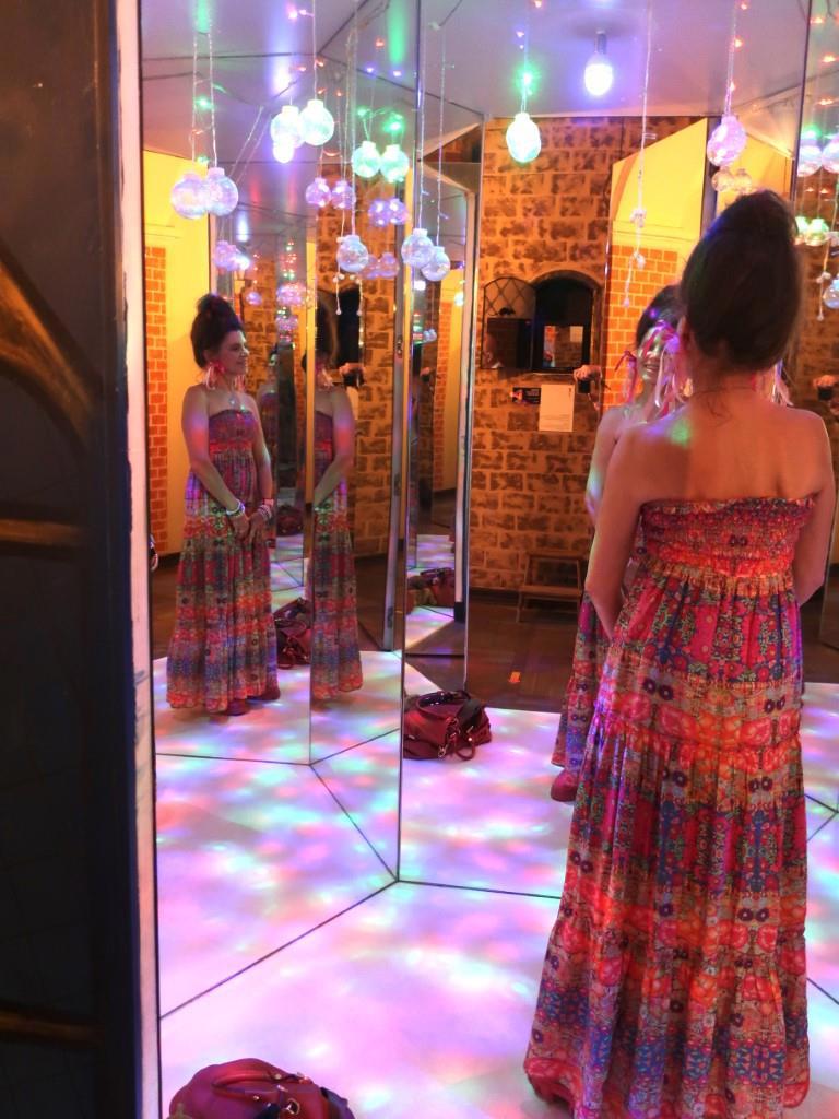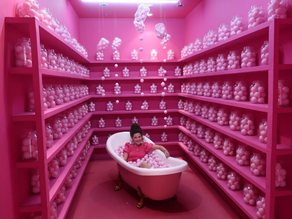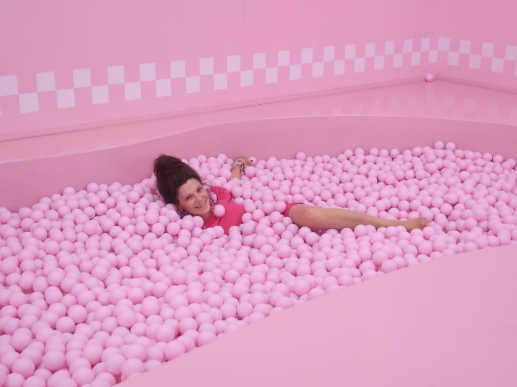 Это такая стиля Барби развлекаловка, которую мы миновать не можем - у нас и розовая одежда приготовлена, и жена с собой. Ездим туда-сюда по одному и тому же району города три раза - найти не можем! Наконец, нашли! Внутри нет никого, потому что уже вечер и скоро закрывается. А нам много времени и не надо – успеем повеселиться!