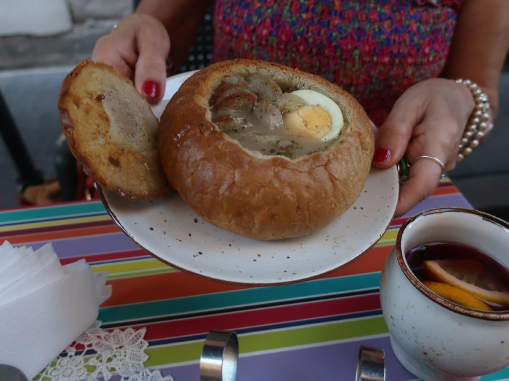 Этот загадочный суп-зурек в хлебе съела жена, а запивала почему-то глинтвейном,