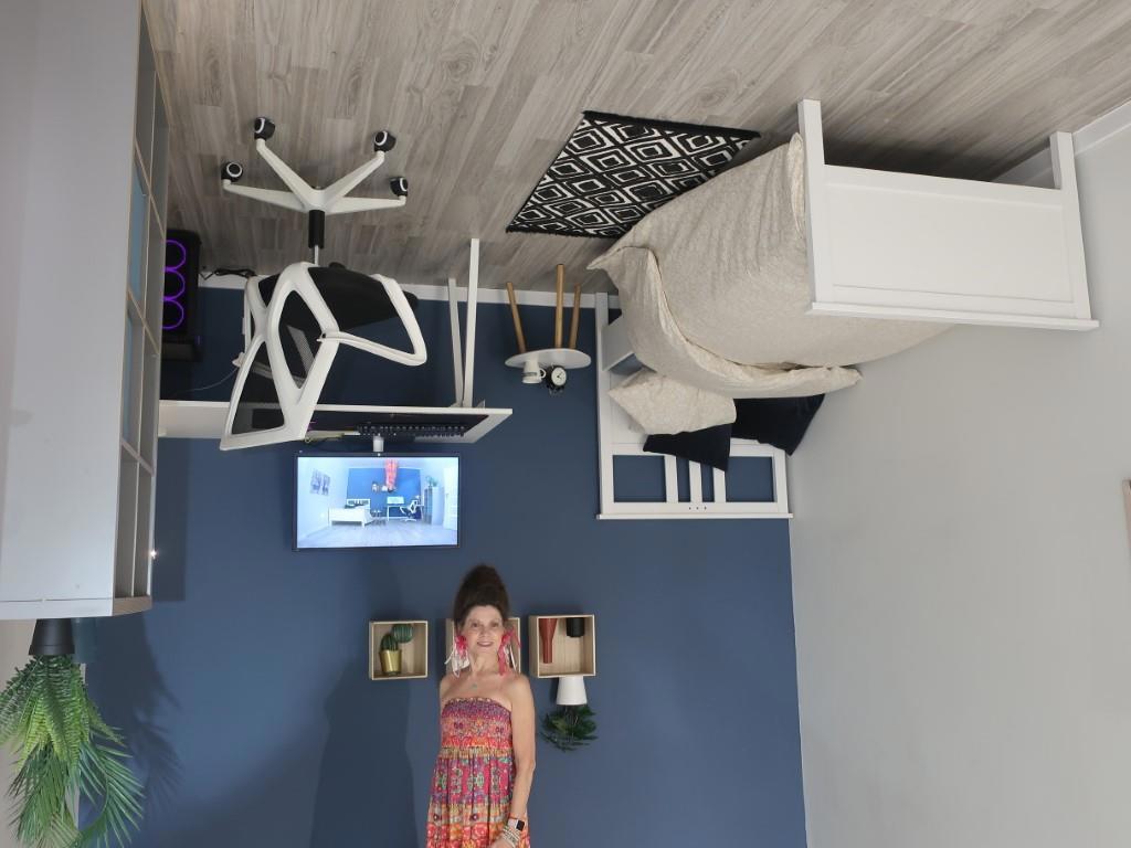 Посмотрите на дисплей компьютера - это жена стоит вверх ногами, а всё остальное - нормально.