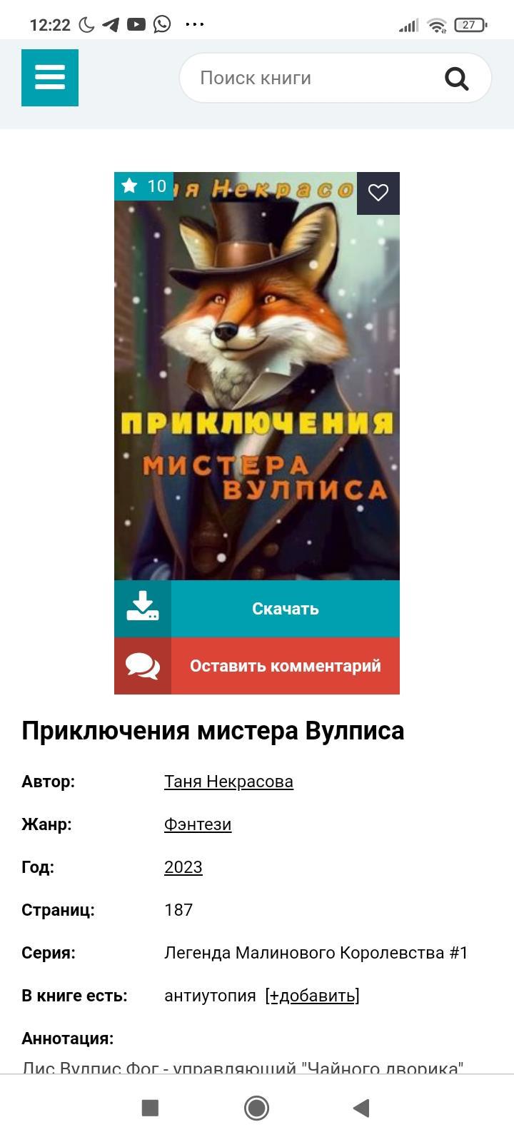 Автор: Таня НекрасоваСегодня на работе забила свою книгу в поисковике, чтоб зайти на сайт, и... обомлела... С конца октября (именно тогда я закончила выкладку) "Приключения мистера Вулписа" расхватали пираты. Вот сижу, думаю - смеяться мне или плакать? С одной стороны, заинтересовала пиратов, ачивка получена.