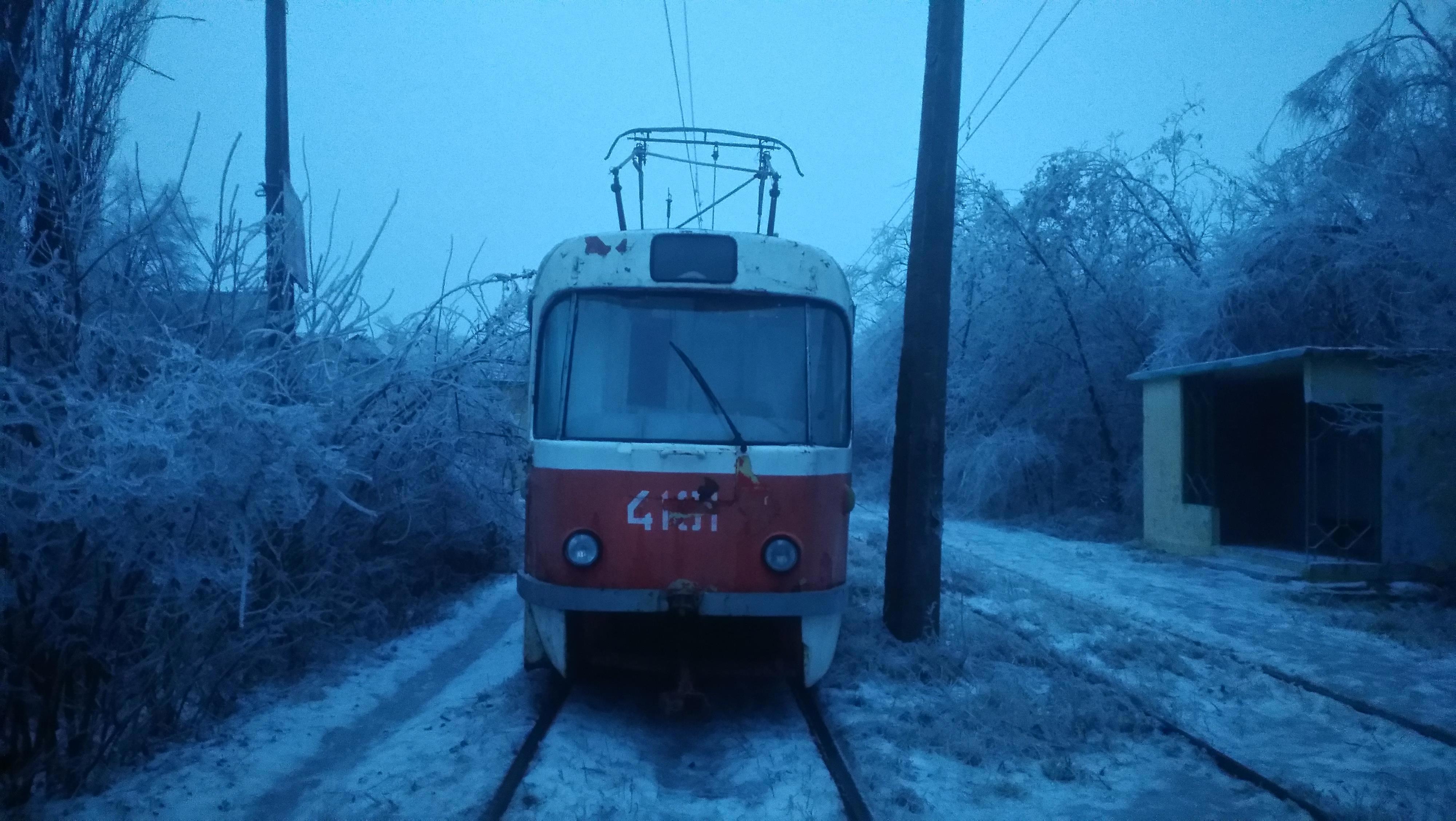 это трамвай встал и скорей всего надолго ибо упавших деревьев и веток огого