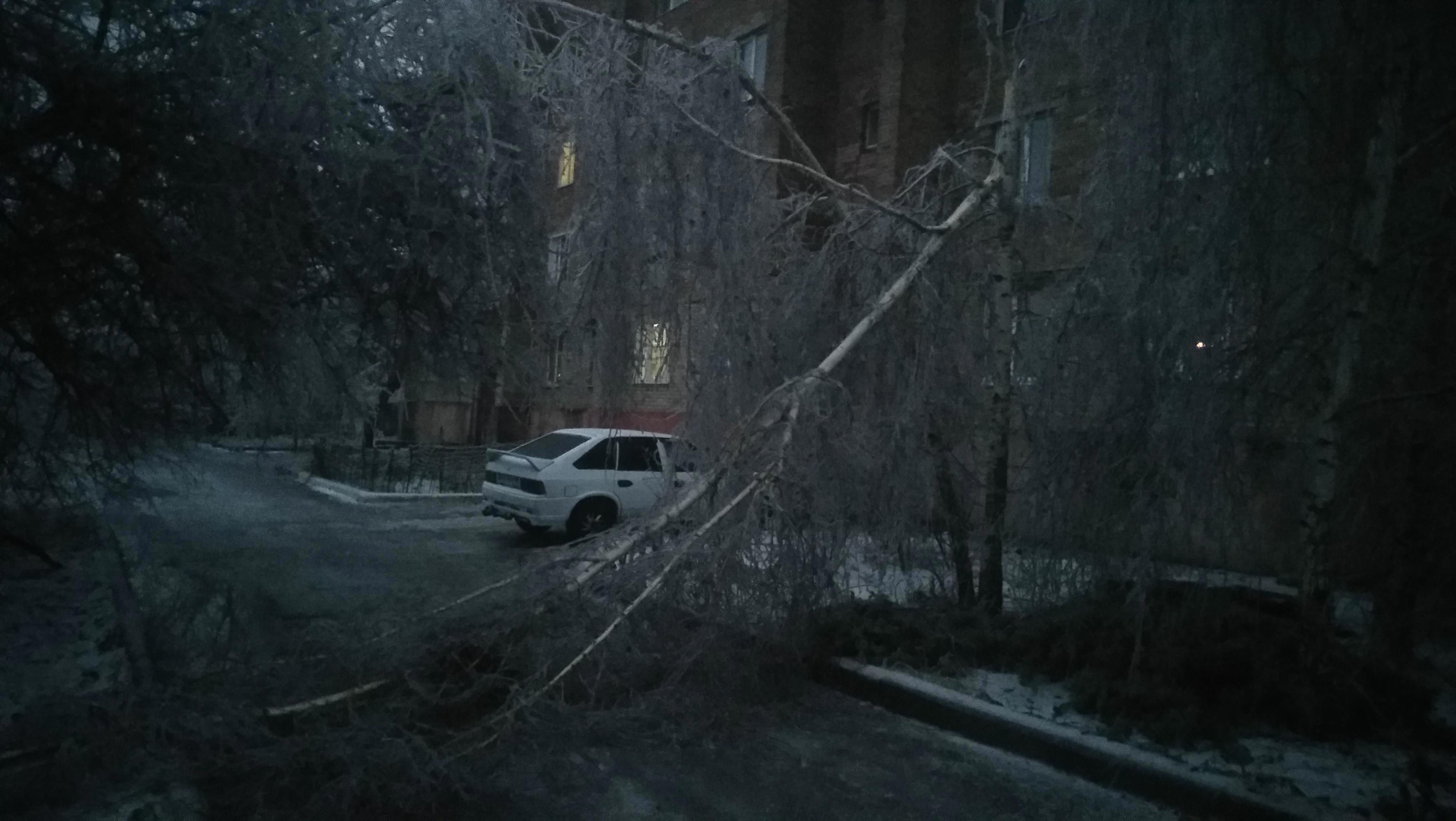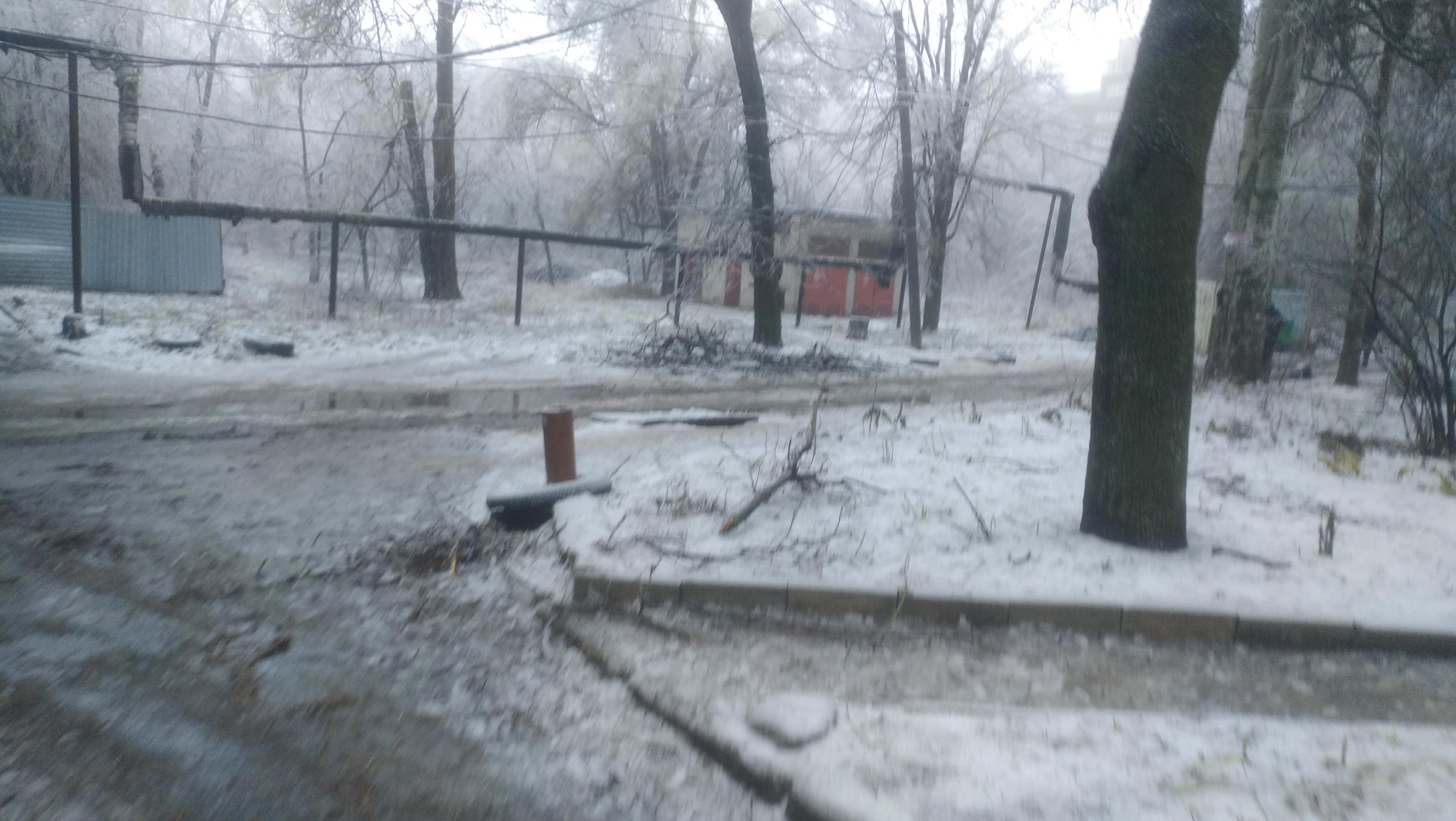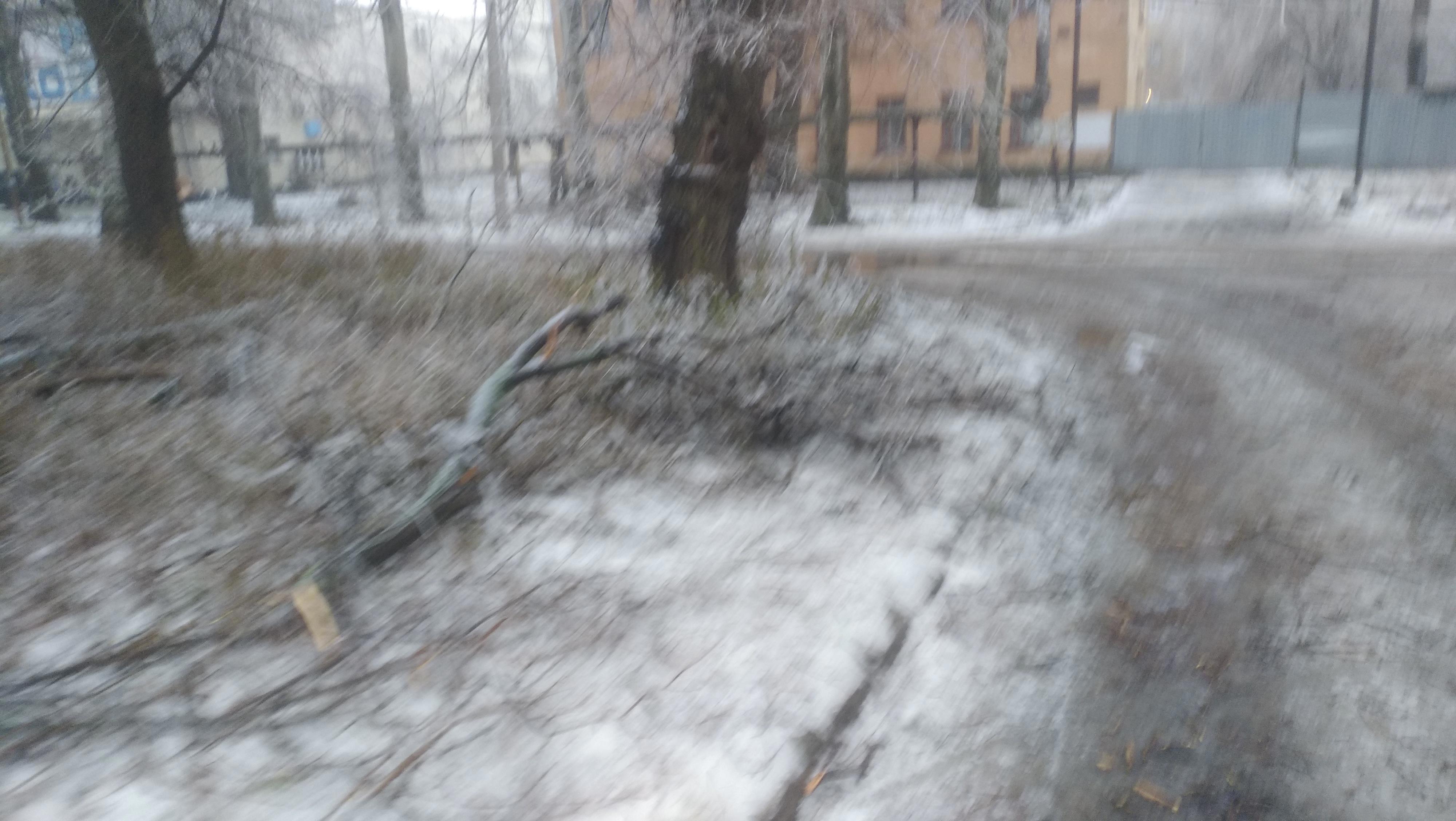 Хронология событий, - недели две назад было весьма тепло и погода была просто аномально тёплой для зимы, а потом хрясь похолодало и пошёл ледяной дождь, который заморозил деревья. И вот когда немного потеплело случилась трагедия, первая фотка эт у моего дома.