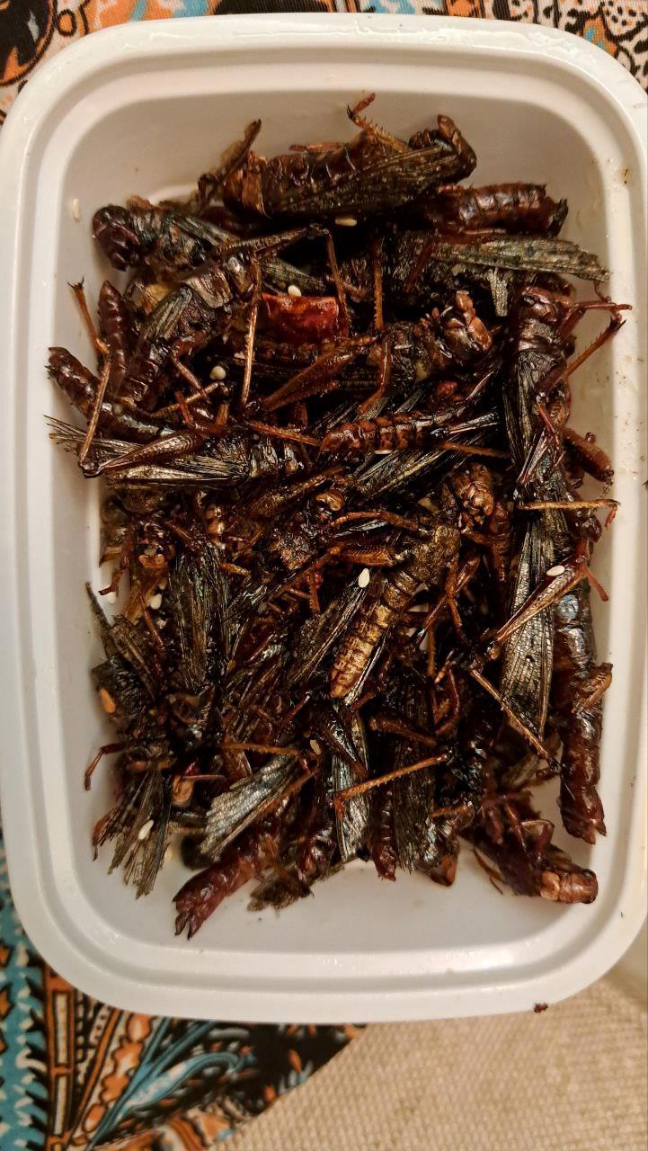 Не стали ждать маршрутного автобуса, взяли такси на «Ночной рынок». Так себе, попсовое место. Нашёл жареных кузнечиков, купил, попробовал, голимый хитин, подсолить и с пивом пойдёт.