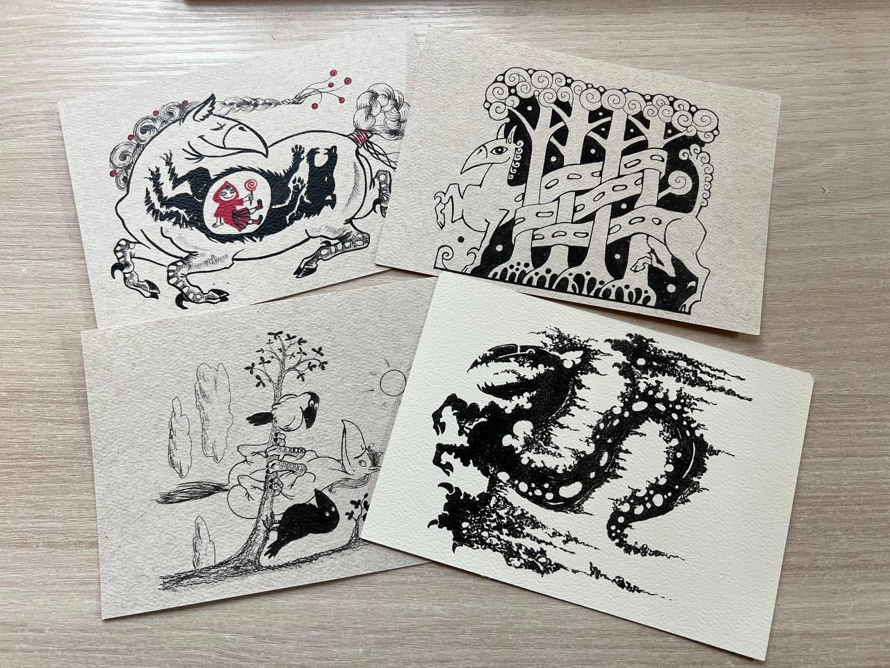 Кроме этого в конверте нашлись открытки по мотивам книг Марийки про экзекутора: