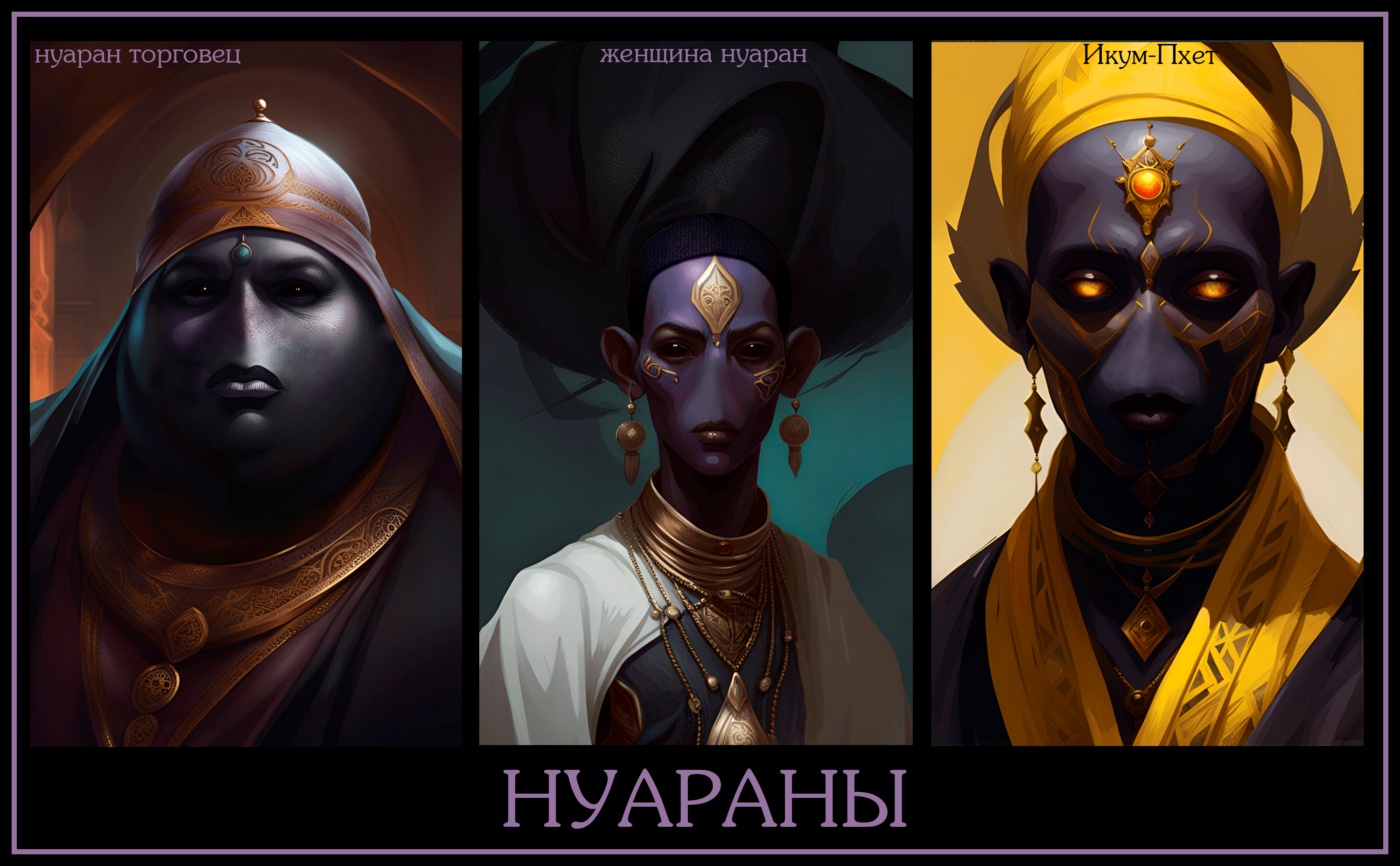 Управляли ими удивительные правители, именуемые икум-пхетами. Очень редко (примерно 1 на 500 тыс) рождается нуаран, обладающий сильнейшими аналитическими, научными и управленческими способностями и мощным энергетическим полем. В отличие от сородичей глаза икум-пхетов не черные, а светящаяся желтые или желто-белые. Такие нуараны, призваны быть духовными, политическими наставниками и лидерами для других нуаранов. Икум-пхеты живут циклами по 30 лет. В процессе первых 30 лет икум-пхет вырастает и становится правителем или наставником, какое-то время управляя остальными нуаранами. Затем он впадает в подобие летаргического сна. Его тело кладут в саркофаг и оставляют в склепе. Через 30 лет саркофаг открывают, икум-пхет оживает и возвращается к своим обязанностям.