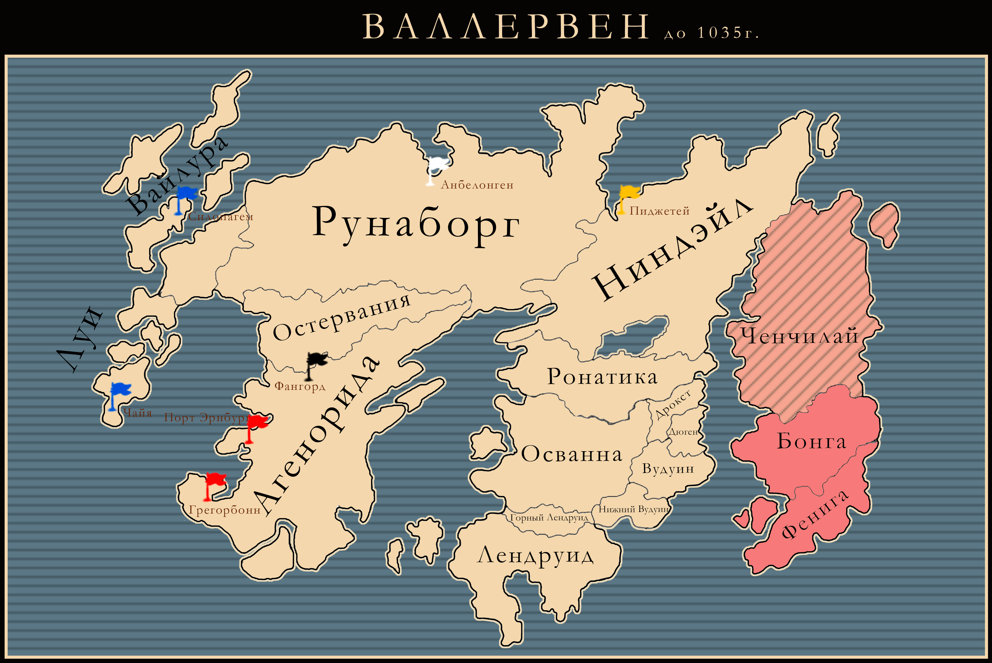 Чтобы предотвратить нападения Рунаборга в 1047 году, государства нуаранов: Бонга, Фенига и Ченчилай присоединяются к «Южному альянсу», (последним независимым странам, противостоящим Рунаборгу). Силами нуаранских кораблей, беспрепятственно патрулирующих про́клятый разлом, альянсу удается сдерживать нападения рунаборжцев с юга.