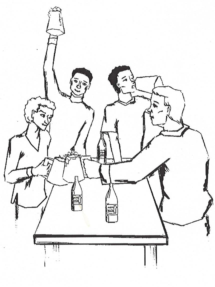 Проследив за его взглядом, Лилипут увидел два здоровенных зеленых пакета, в которых время от времени что-то подозрительно позвякивало. Он тут же попытался возразить друзьям, мол, по утрам нормальные люди завтракают бутербродами с чаем или кофе и пьют разве что апельсиновый сок… Думаете, ему удалось кого-нибудь переубедить?