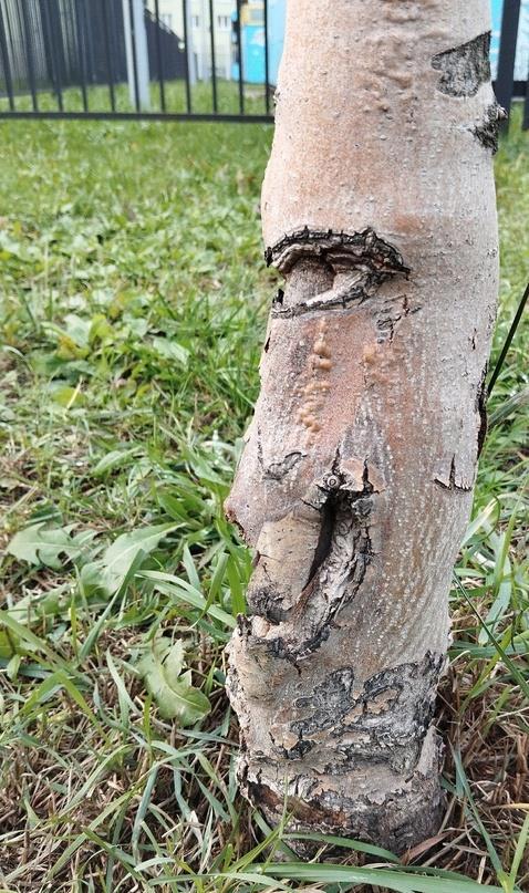 На следующий день (!) увидела этого товарища во дворе. Причем знаю, что деревья эти уже лет пять назад посадили, но такое ехидное лицо я не замечала... Хотя у меня две собаки, с которыми гуляю каждый день.