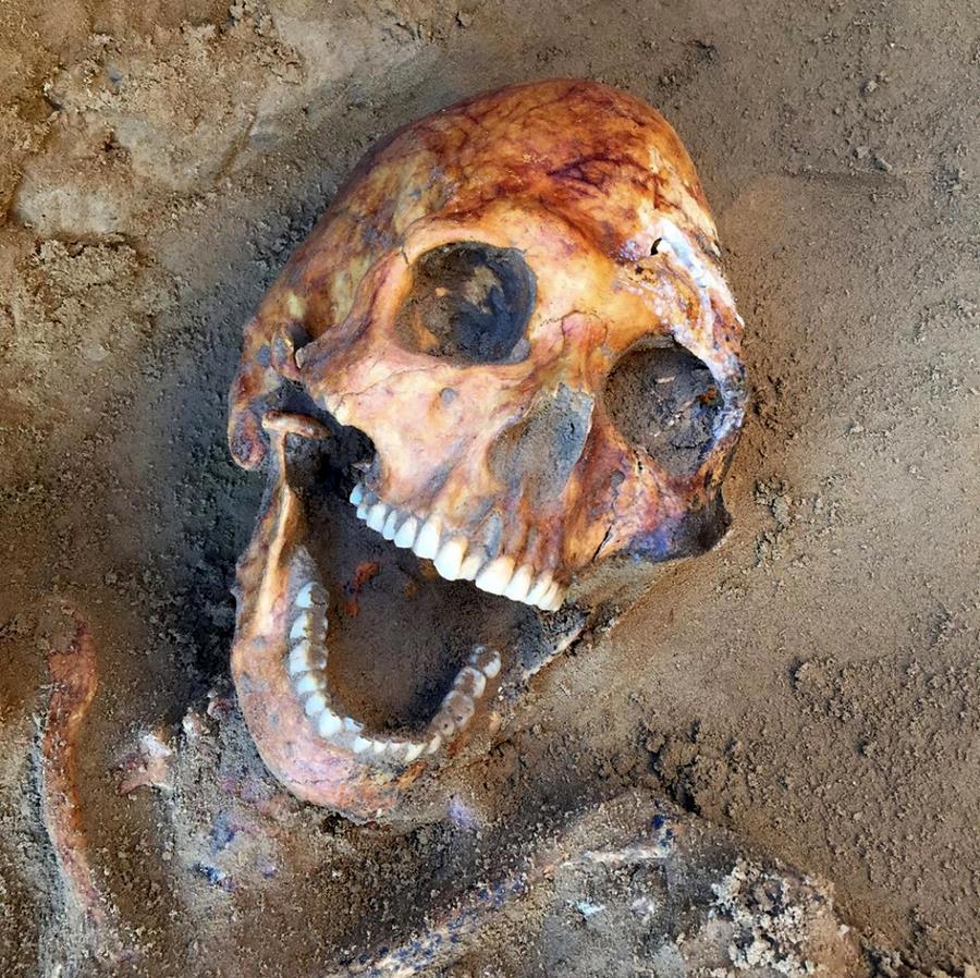Что ещё? Слабый культурный слой. Это мне понятно – я про это уже недавно писал. Могильники на возвышенных местах вблизи рек так же, как и у фатьяновцев. Захоронения довольно интересные. Прямоугольные или овальные ямы до 2-ух и более метров глубиной, столбы, обкладки, перекрытия, иногда в насыпях встречаются «жертвенники» – черепа и кости ног лошади. А вот это уже очень интересно. Невольно вспомнился могильник на Богомольных песках, который археологи отнесли к сарматам. Его как раз сейчас раскапывают, и именно его я имел в виду в начале этой заметки, когда сказал о втором событии. Там уже нашли девять захоронений и успели определить, что это место использовалось в качестве кладбища очень долгое время. Там нашли мальчика с альчиками и одного покойного с вытянутым (искусственно деформированным черепом)… Вот, кстати, этот белозубый весёлый предок: