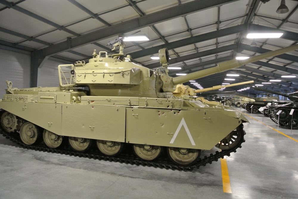 Дескать во время очередной арабо-израильской драки арабы смогли подбить такой танк и наши советники тут же добились того, чтобы это совершенно неизвестное на тот момент железо было переправлено в СССР. Новейший танк у противника - всегда желанная добыча.