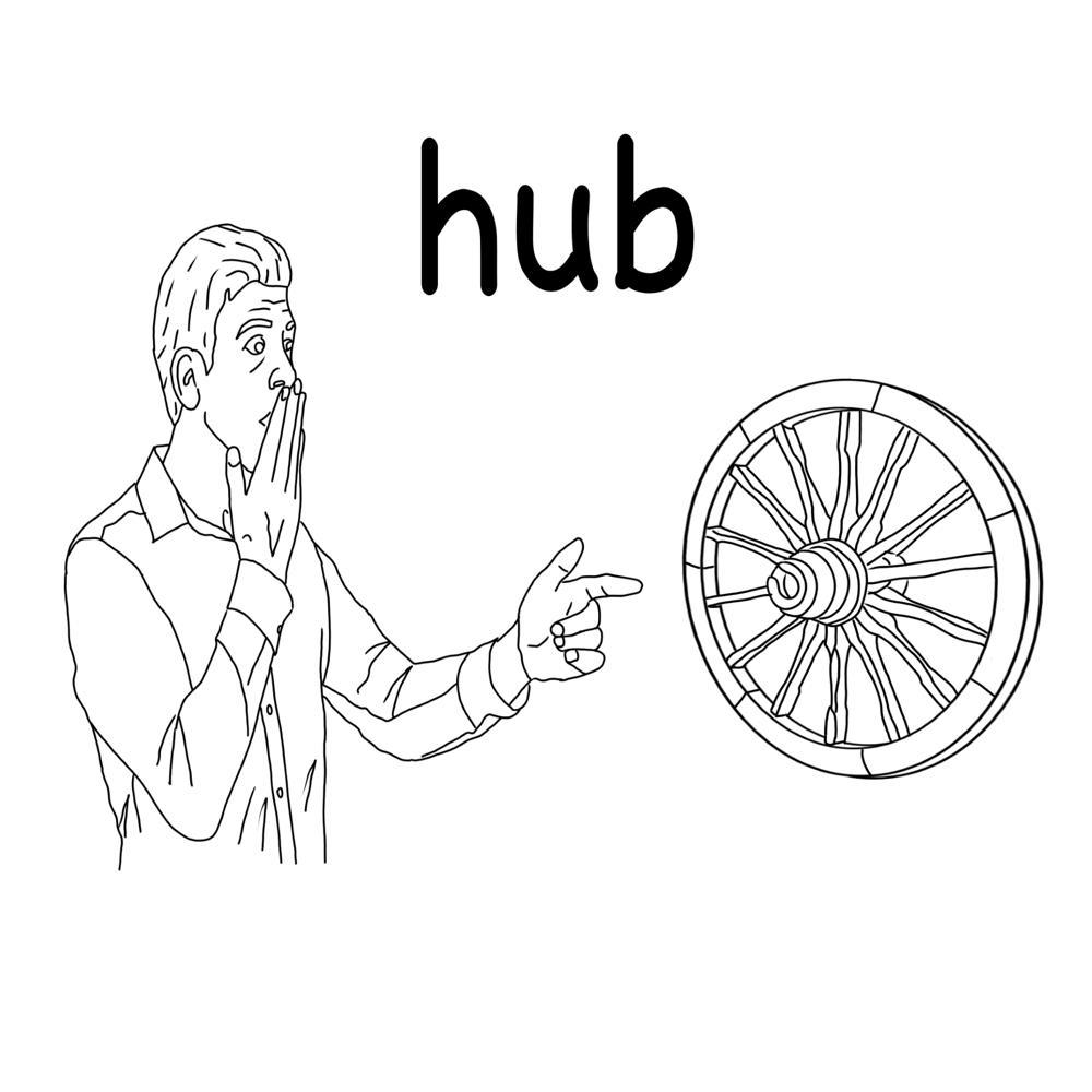 (англ.) hub – ступица колеса, центр.