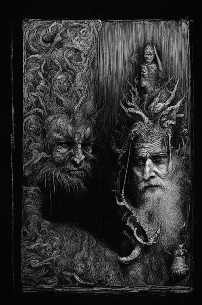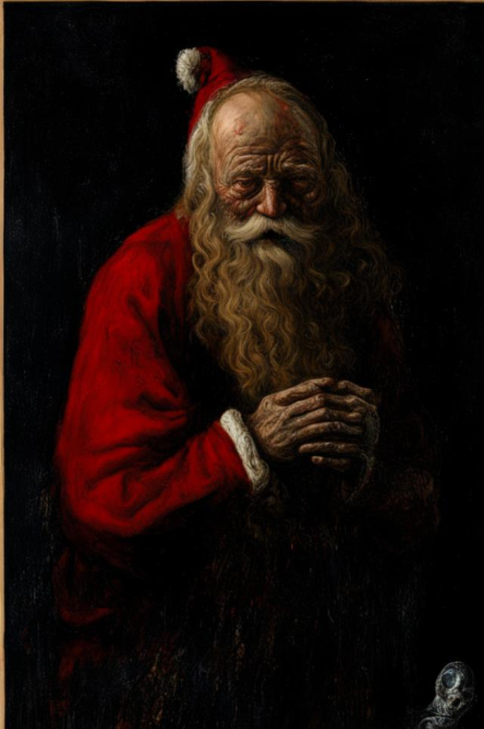 Автор: Майя МалиновскаяВсе просто. Ева Кибанова попросила обложку к рассказу. И не какого-то там доброго синего Деда Мороза, и не доброго красного Санту. Трешовенькая получилась обложка в стиле немецкой гравюры. Как сделать картинку, не читая рассказа