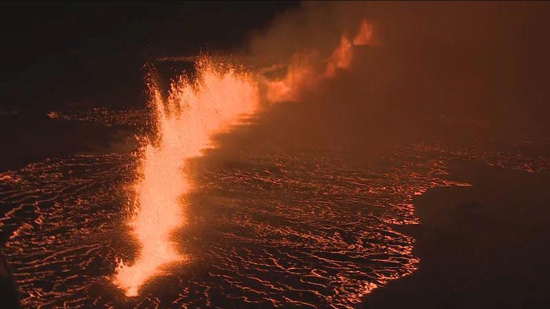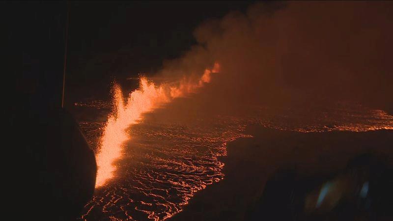Автор: Елена СтаниславоваТрещина ночью была длиной 4 (четыре) километра. И она может увеличиться в любой момент. Из этой трещины лезет магма (иногда фонтаном), и лава течёт на север (пока).