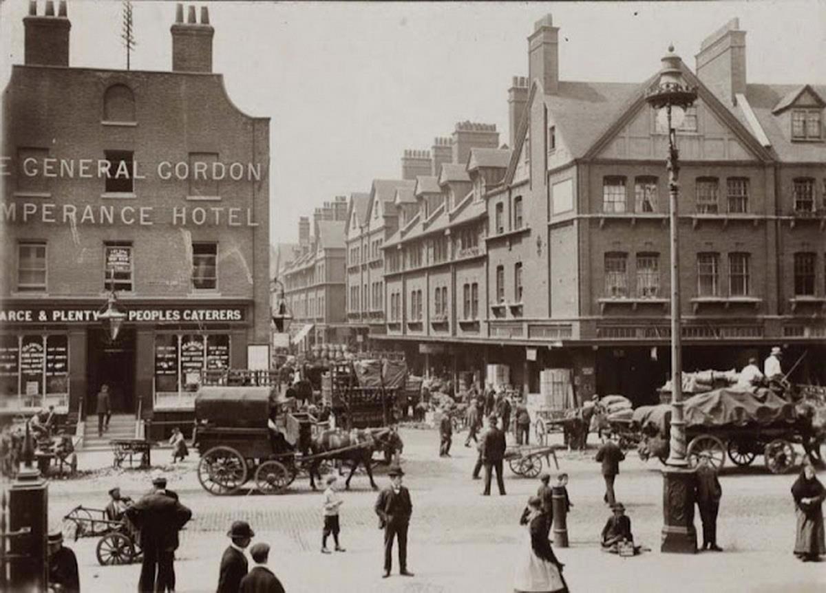 Спиталфилдс (Spitalfields) на перекрёстке Коммершл-стрит (Commercial Street) и Брашфилд-стрит (Brushfield Street)