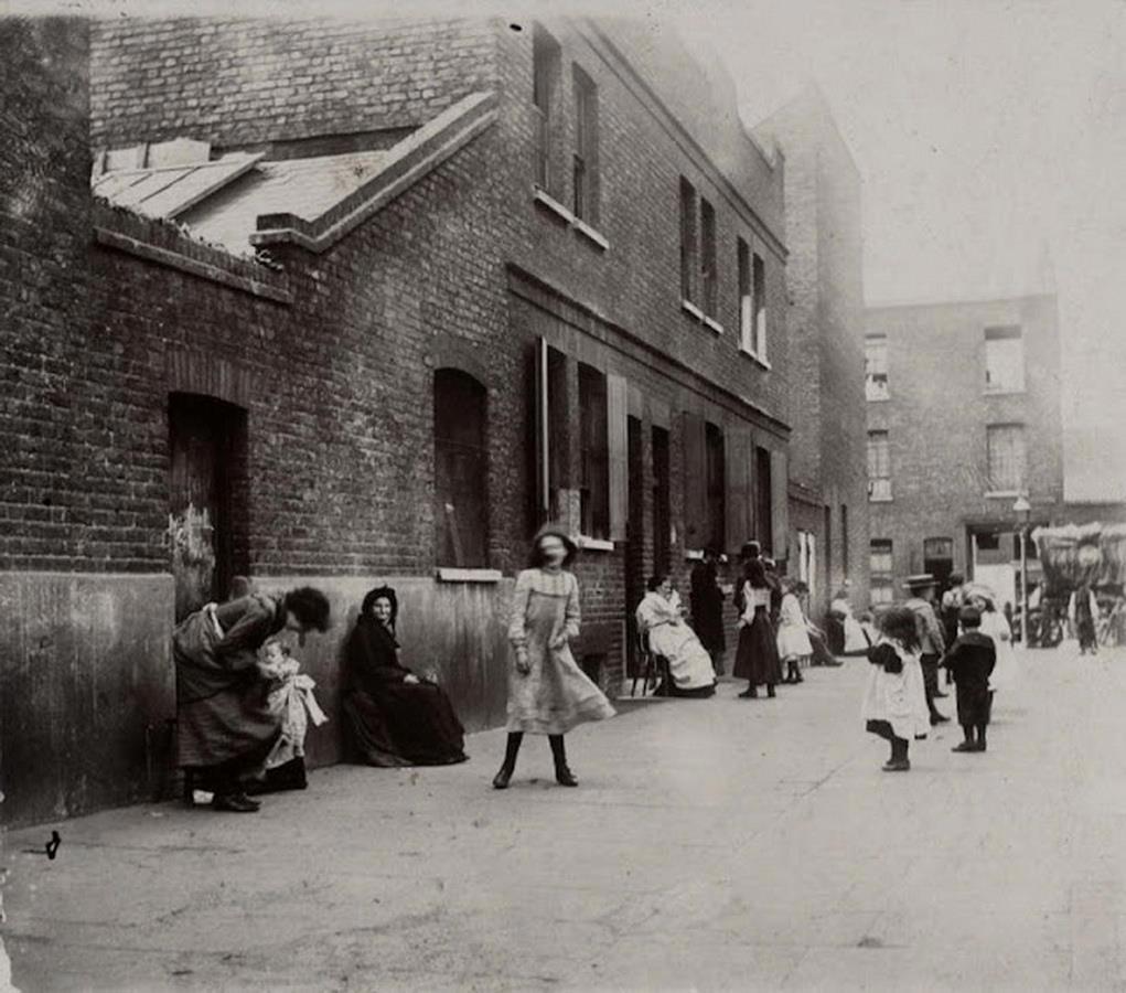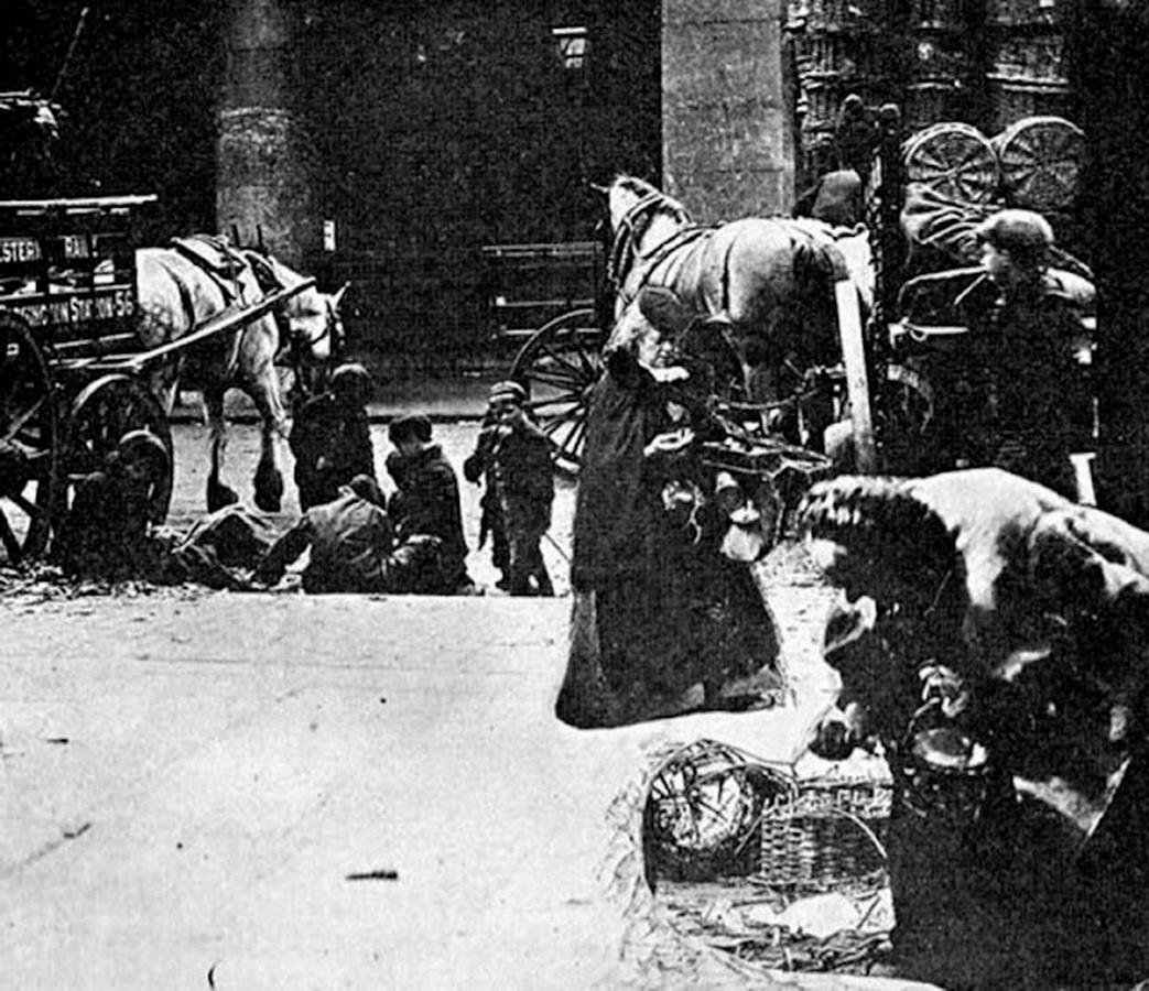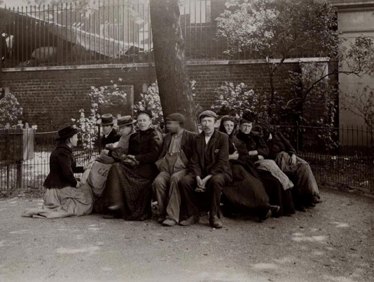 Бездомные во "Вшивом» парке", (Itchy Park, Spitalfields). Парк назван "Вшивым", точнее, "Зудящим", из-за обитавших в нём завшивленных бездомных. В Спиталфилдс находятся две улицы, оспаривавшие в конце 19 века звание худшей улицы Лондона: Флауэр-энд-Дин-стрит (Flower and Dean Street) и Дорсет-стрит (Dorset Street)