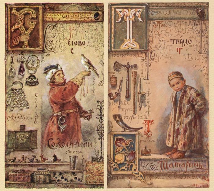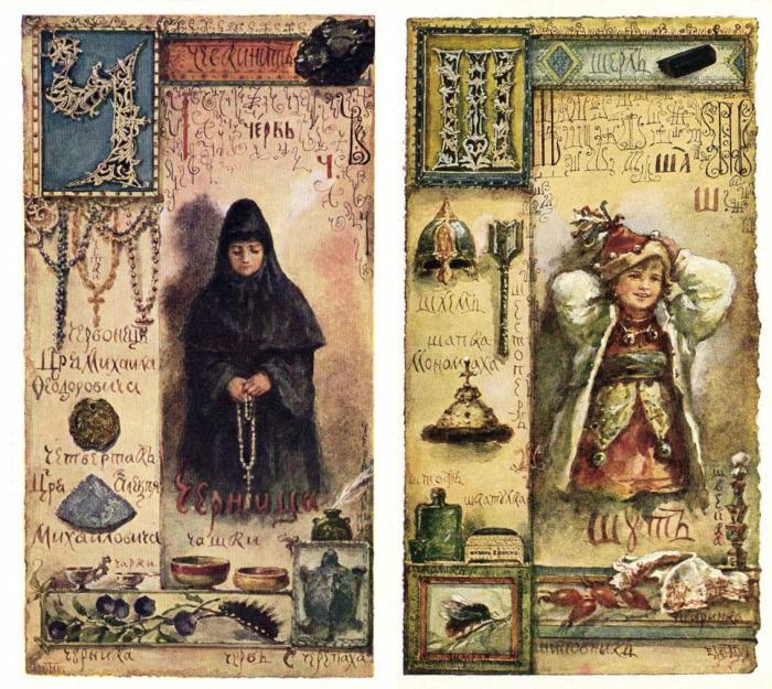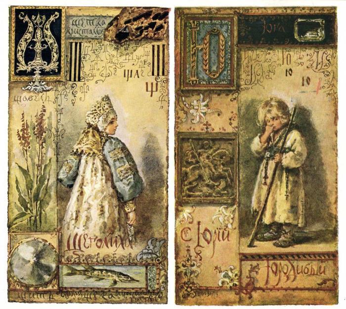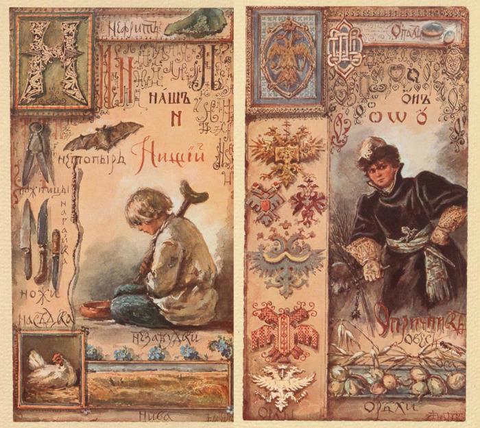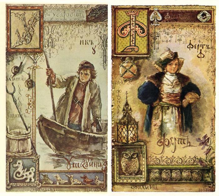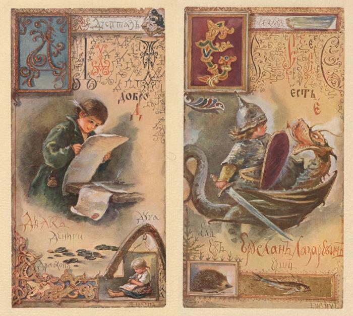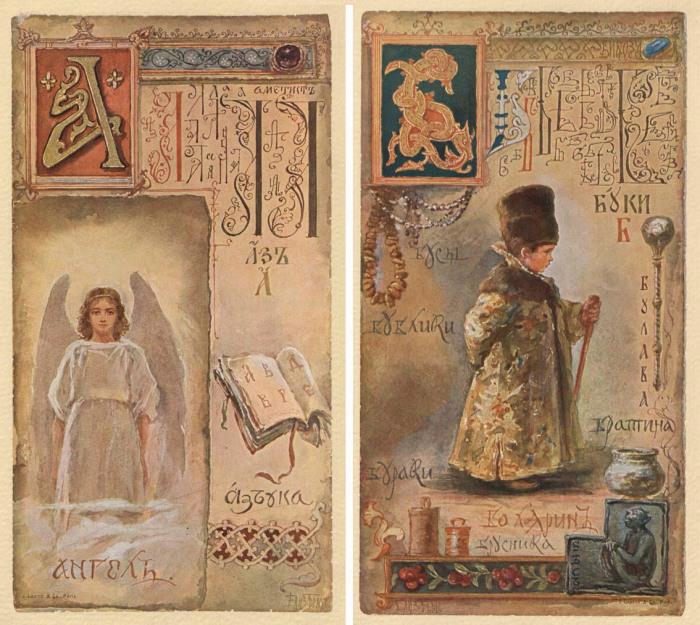 Изданная в 1913-1914 годах в Париже, «Азбука» на много лет стала эталоном для детской иллюстрации. Серия задумывалась скорее не как материал для обучения грамоте, а как красочная историческая энциклопедия.