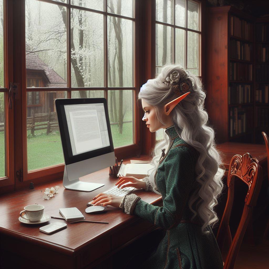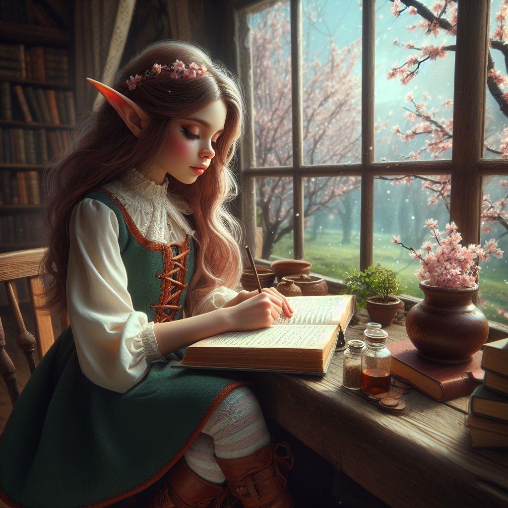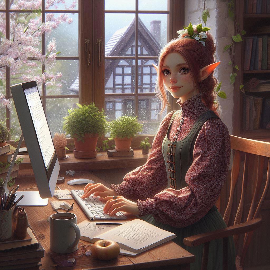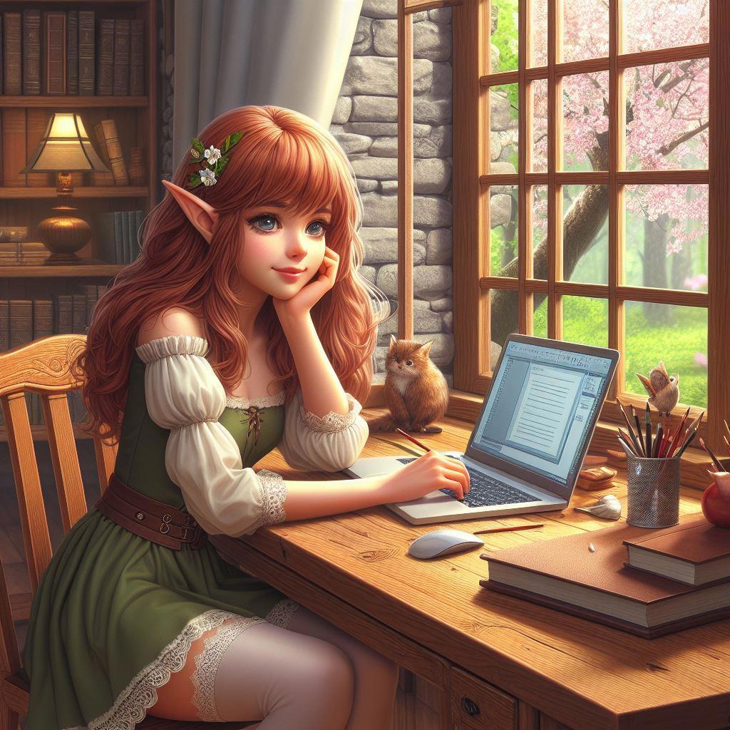 Давно хотела выложить эти арты, но всё никак руки не доходили. Как-то была у меня идея наделать эльфиек на компьютером или за написанием чего-нибудь. В общем, эльфийки за рабочим столом, занятые каким-то делом. Естессно полезным.