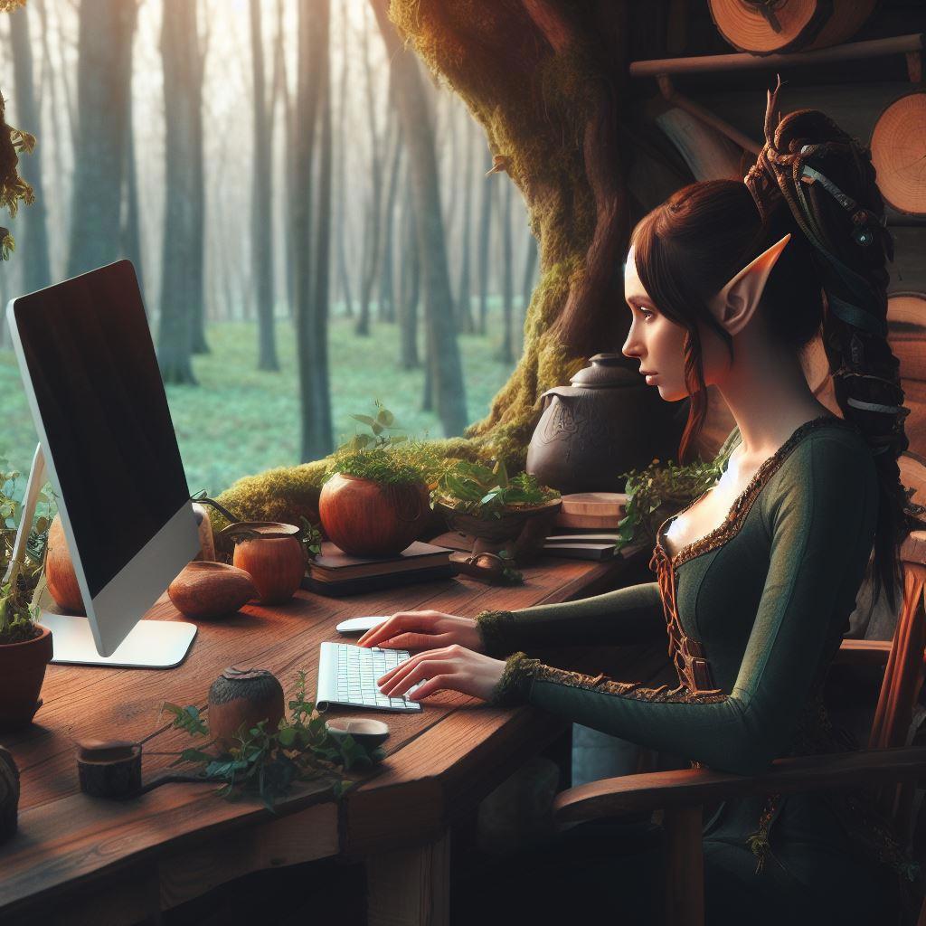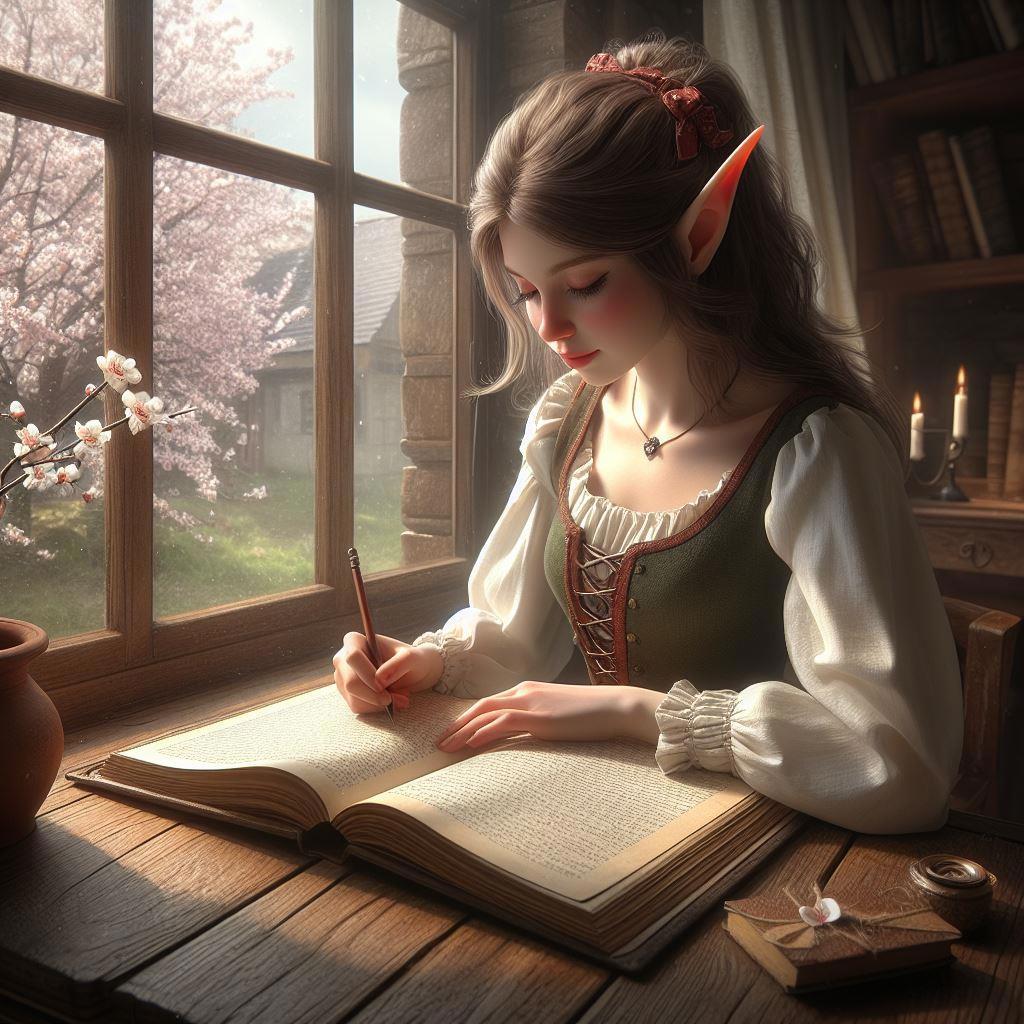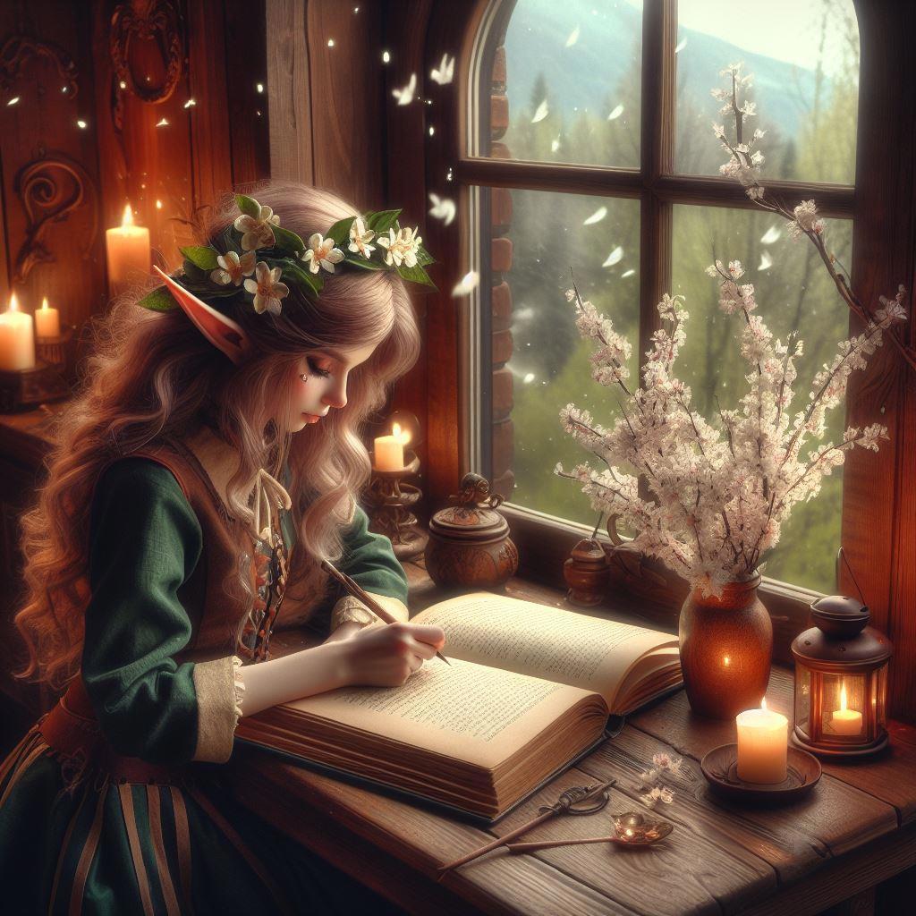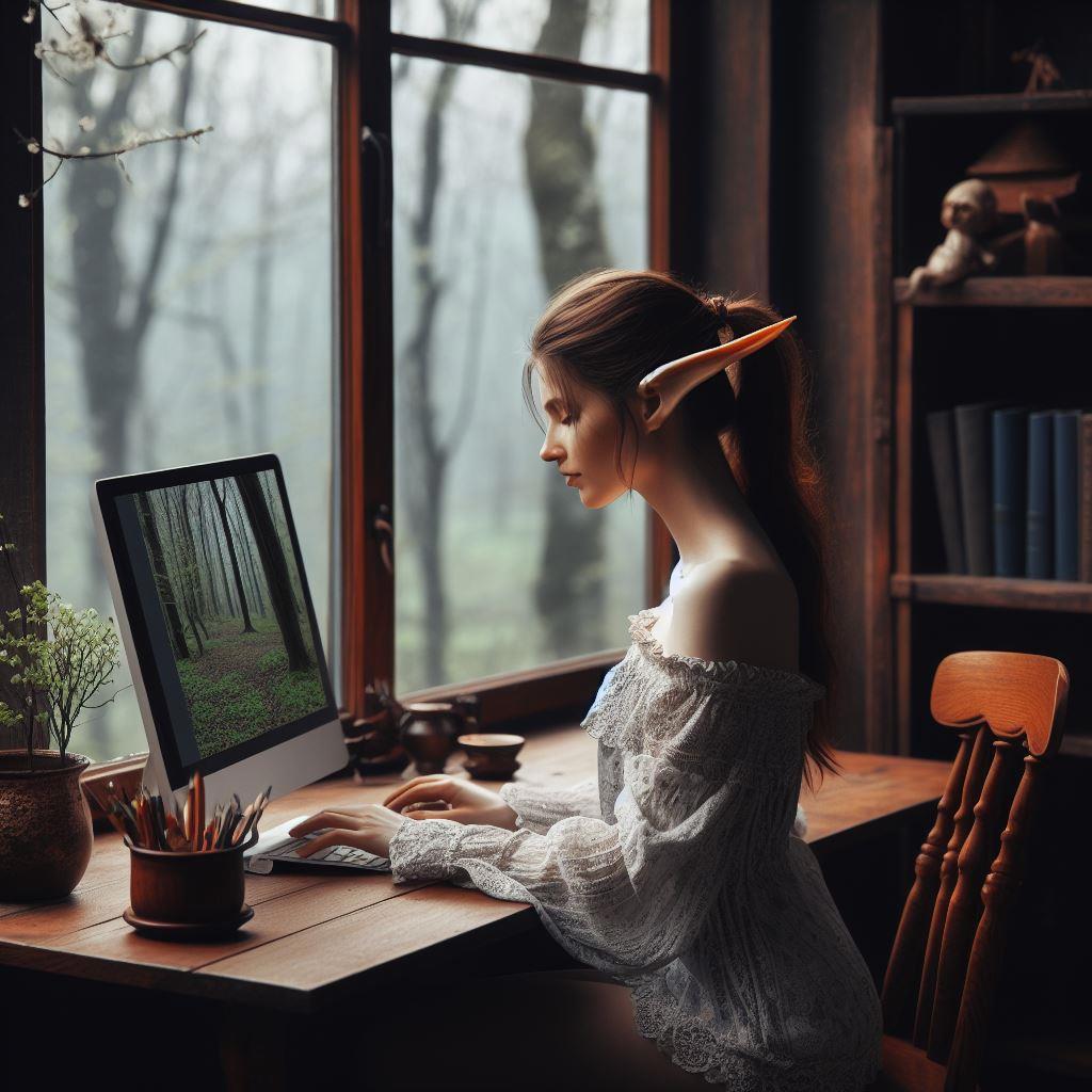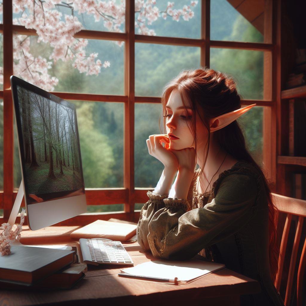 Давно хотела выложить эти арты, но всё никак руки не доходили. Как-то была у меня идея наделать эльфиек на компьютером или за написанием чего-нибудь. В общем, эльфийки за рабочим столом, занятые каким-то делом. Естессно полезным.