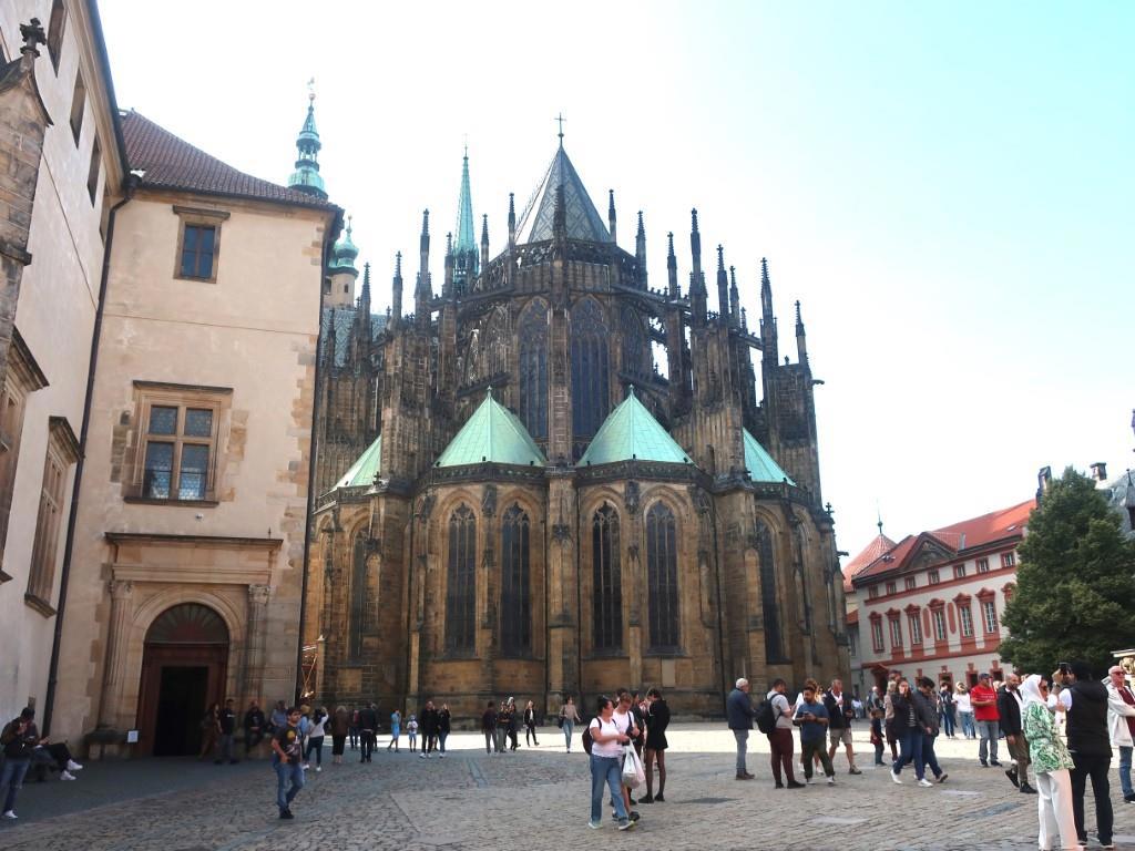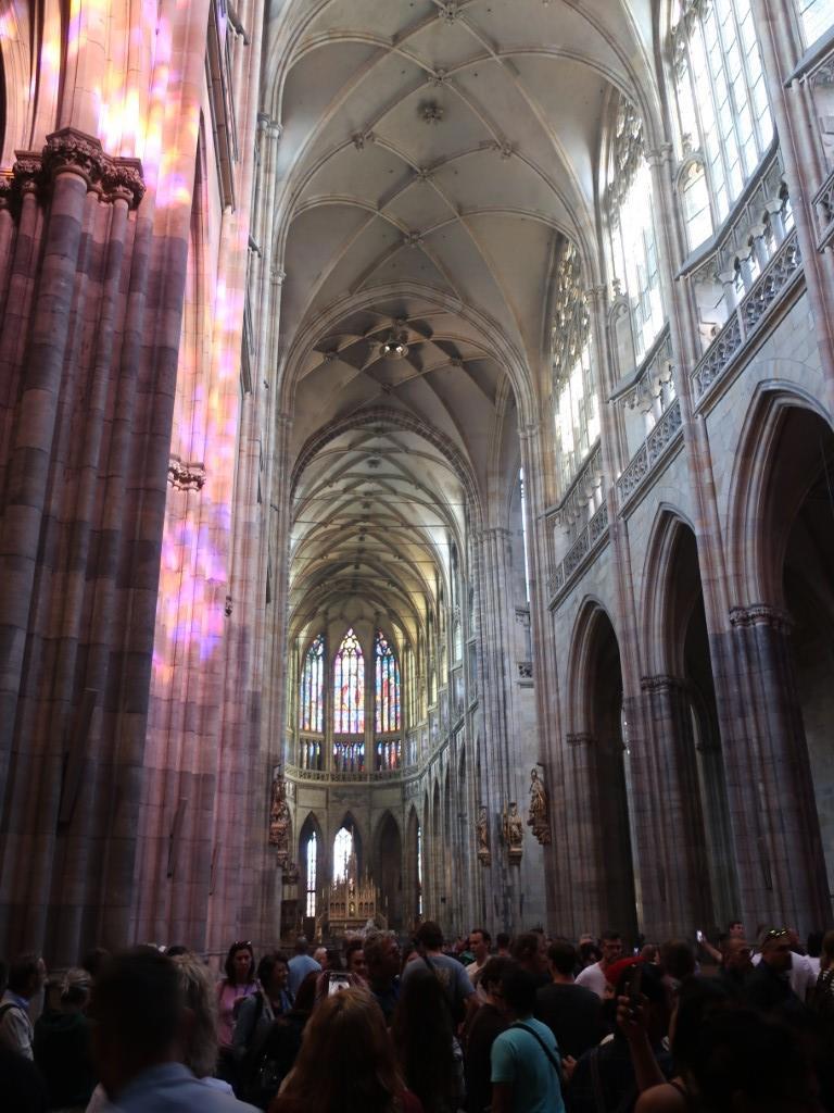 Кафедральный собор Святых Вита, Вацлава и Адальберта, как уж они втроём уживаются, одному богу известно. В нём усыпальница многих богемских королей и императоров Священной римской империи.