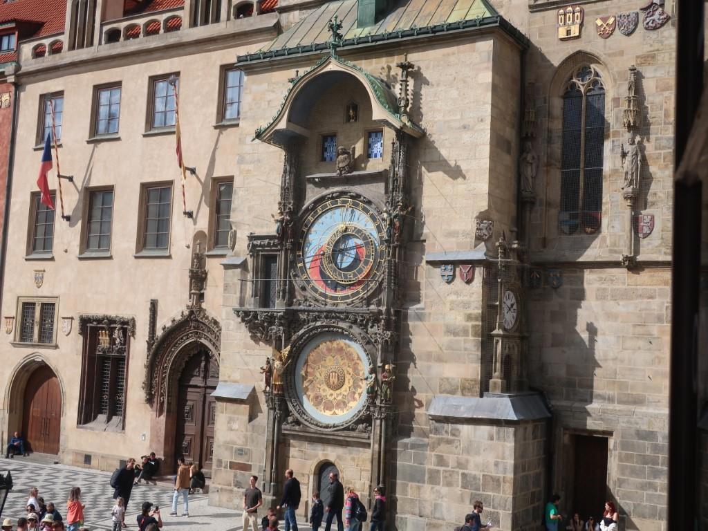 Часы являются третьими по возрасту астрономическими часами в мире и старейшими, которые всё ещё работают. В центре находится астрономический циферблат, который показывает старочешское, вавилонское, центральноевропейское (современное) и звёздное время, время восхода и захода солнца, положение Солнца и Луны, а также фазы Луны. По сторонам от астрономического циферблата расположены движущиеся каждый час фигуры, среди которых особенно выделяется фигура Смерти в виде скелета человека. Наверху по сторонам от центральной каменной скульптуры ангела имеются два окошка, в которых каждый час, когда бьют часы, показываются фигуры 12 апостолов, сменяя друг друга. Над каменной скульптурой ангела находится фигура золотого петуха, который кричит по окончании процессии апостолов. Под астрономическим циферблатом расположен календарный циферблат, позволяющий определить день и месяц календарного года, день недели, нерабочие дни, а также постоянные праздники христианского календаря. По сторонам от него также расположены скульптурные фигуры. Изготовлены в 1410 году, но посложнее даже моих часов.