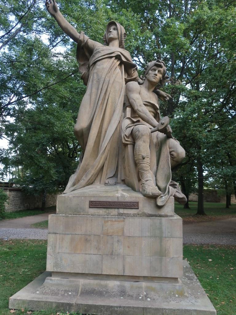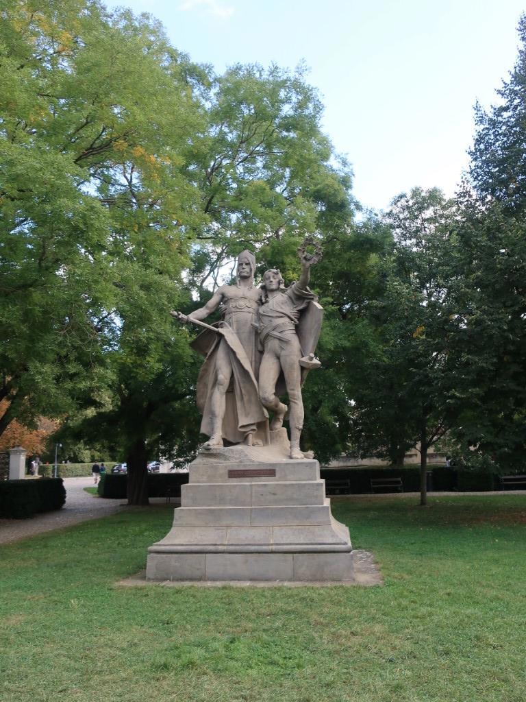 Согласно легенде, Пршемысл был крестьянином, в которого влюбилась Либуше, дочь Крока, правителя Богемии. Либуше стала преемницей своего отца, её советники потребовали, чтобы она вышла замуж, но, поскольку Пршемысл не был дворянином, она не могла выйти за него. Либуше схитрила - она рассказала о сне, в котором она следовала за лошадью, выпущенной на перекрестке, чтобы найти ее будущего мужа. Таким образом она создавала впечатление, будто это воля судьбы, а не её собственное желание. Существуют две версии легенды: одна гласит, что ей приснился человек, который вспахивает поле одной сломанной сандалией, а другая - сидящий в тени дерева человек, который ест с железного стола (своего плуга). Либуше так и сделала и нашла Пршемысла именно таким, как было предсказано. Пршемысл стал основателем династии. Такая статуя была установлена на каком-то мосту, но в 1944 году сильно повреждена американской бомбардировкой. Так что мы видим всего лишь копию, которую поместили в Вышеград, чтобы создать парк исторических и мифологических существ.