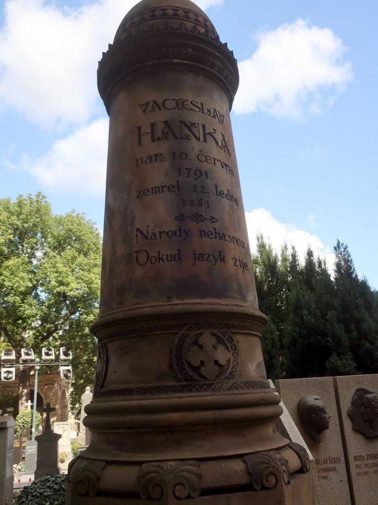 Václav Hanka - какой-то лингвист, почему ему поставили такой фаллический памятник – неясно, но он был именно тем, кто нашёл поддельную рукопись и выпустил её в свет, как настоящую.