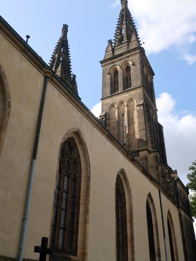Базилика Святых Петра и Павла основана в 1070–1080 годах чешским королем Вратиславом II. Горела, перестраивалась. Интересная каменная мозаика над входом.