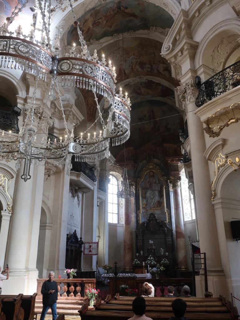 А церковь известна тем, что на строительство католического костёла раввин еврейского гетто, что по соседству, пожертвовал 100 талеров, это по мнению чехов свидетельствует о толерантности и мирном сосуществования различных религий во времена Рудольфа. Я же думаю, что его просто заставили.