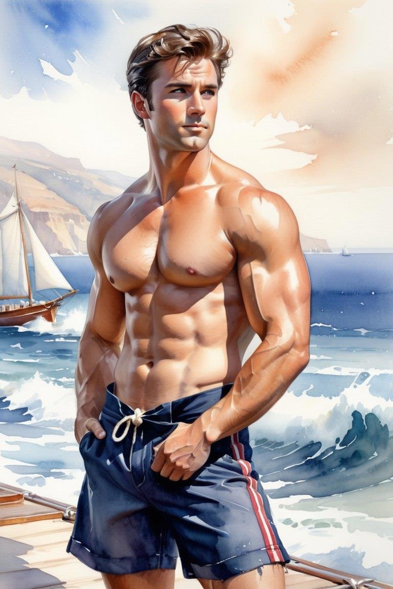 Ну а по сути, несмотря на свою искреннюю любовь к голому женскому телу, решил попробовать сгенерировать не совсем одетых мужчин. И моих читательниц немного порадовать. А то некоторые уже жаловались, что я слишком увлекся женскими сиськами, и совсем не думаю о женских хотениях…