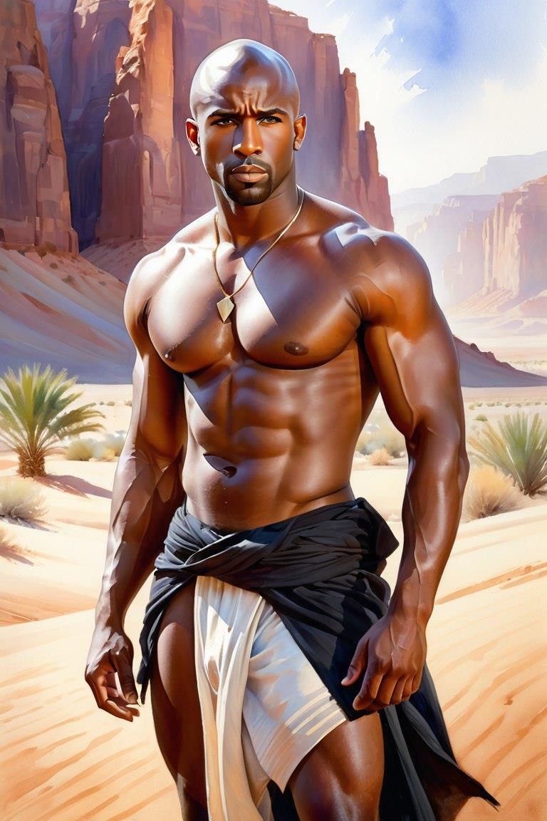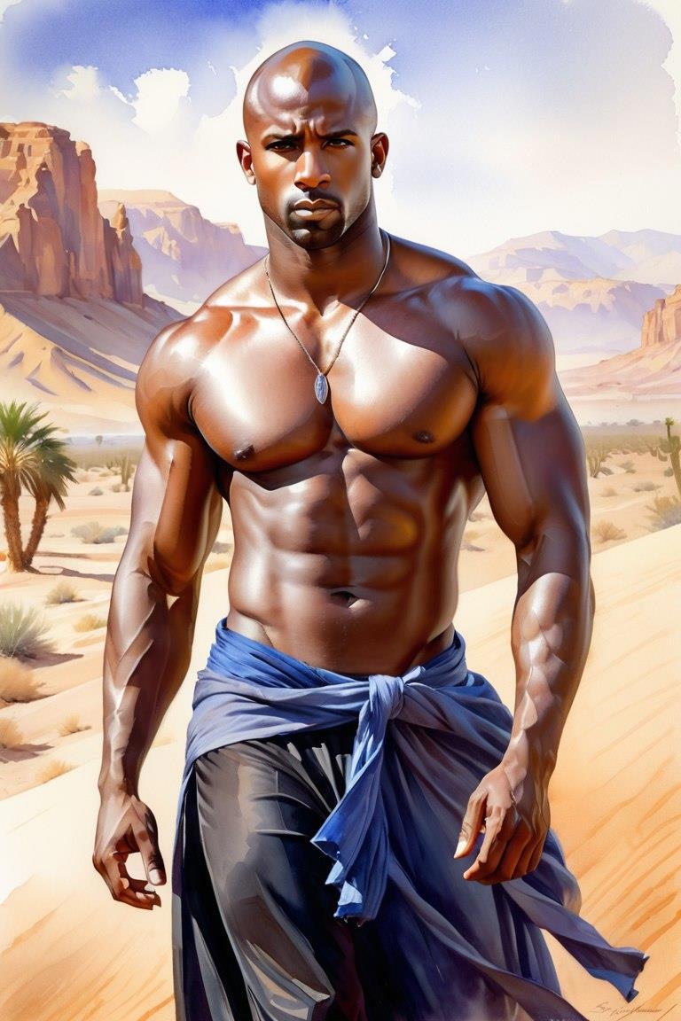 Дальше я решил сделать негра афроамериканца в пустыне: