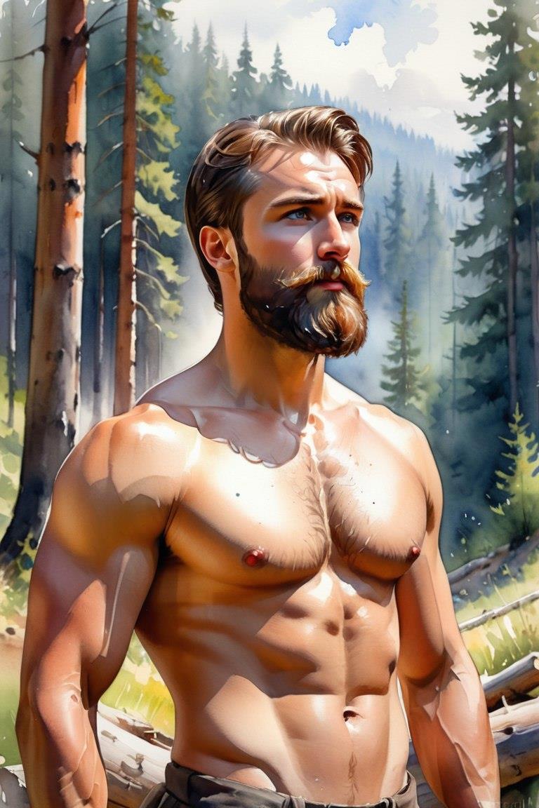 Ну а дальше стал немного играться с базовым запросом, меняя пару деталей. Попробовал вот сделать русского бородатого мужика в лесу: