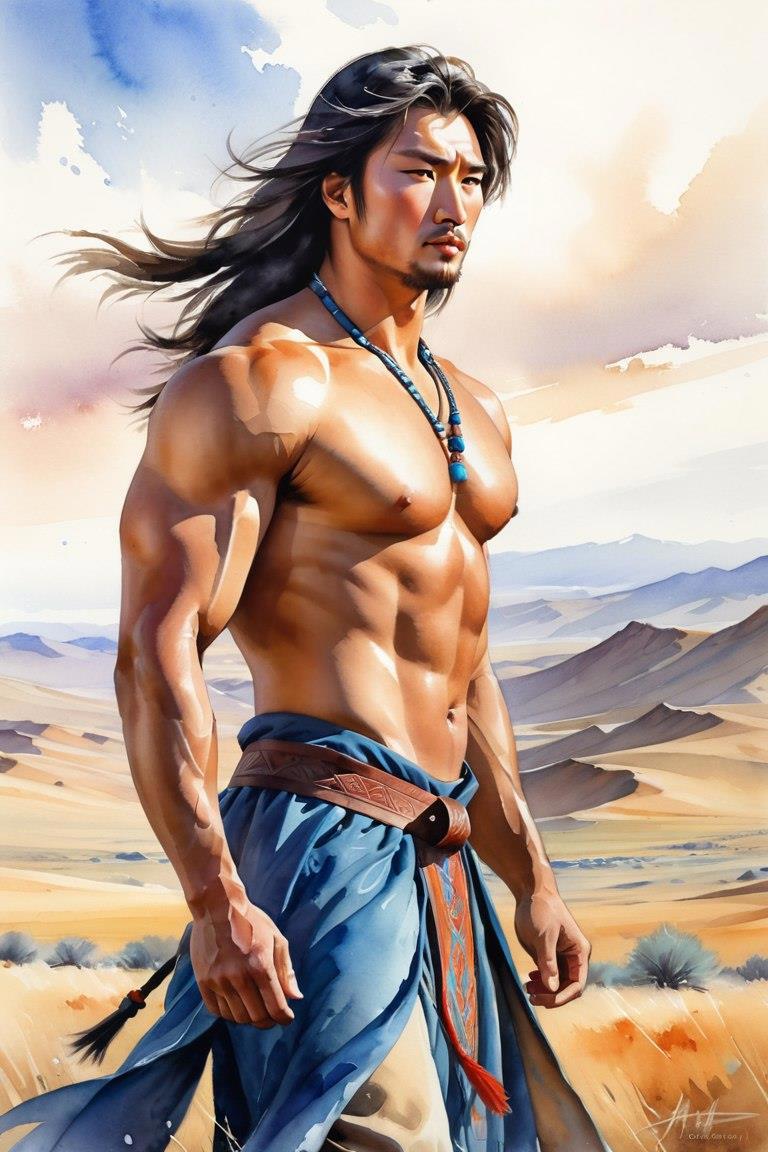 Как видите, получился голый мускулистый японский мужик. Можно докопаться что не прямо голый, что прикрыто «колбасно-яичное ассорти», но - во-первых используемая модель вообще не очень любит творить обнаженку (хотя сделать заголяк все равно элементарно), во-вторых ну не любитель я смотреть на мужские писюны! Плюс нет уверенности что модерация не снесла бы пост и не забанила бы меня вообще.