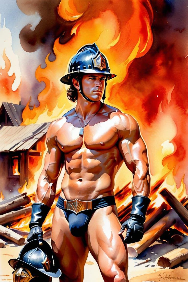 Вот тут получились не мужики, а натуральная гачи-мечта! Еще и пафосно не смотрят на огонь позади себя…