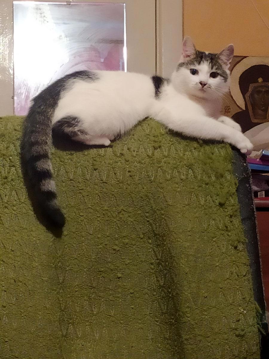 За страдания в ночи утром ему положена прогулка на руках в комнату, вычёсывание пузика и игра в красную точку или мышку. Мышку хозяйка бросает, а Смурфик её приносит из дальнего угла, как собачонка. Иногда мышка падает в кресло, тогда Смурфик обегает в поисках её всю комнату, но найти не может. Глупый кот.