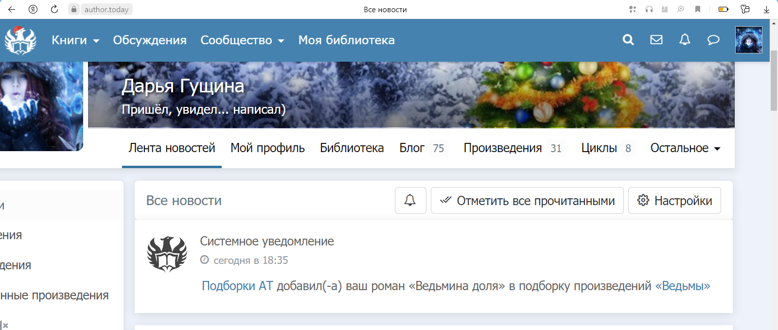 В начале этого года в виджете побывала «Ведьмина доля»: https://author.today/work/162370