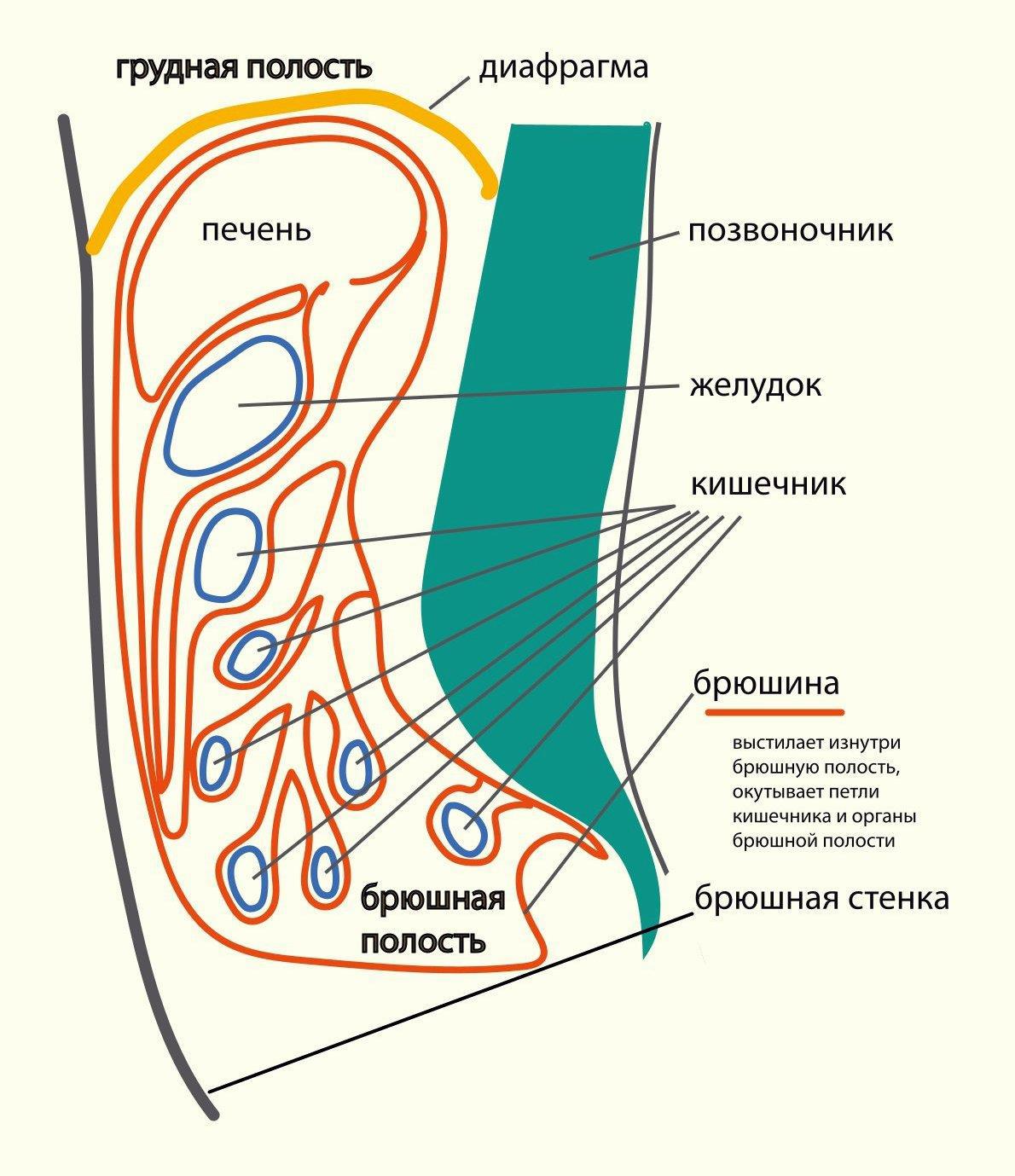 Автор: ЛилияНакидала тут схему, из которой можно понять разницу между брюшной полостью, брюшной стенкой и брюшиной. Постаралась излишне не усложнять, но если что-то не очень понятно, пишите в личку, всегда рада ответить.