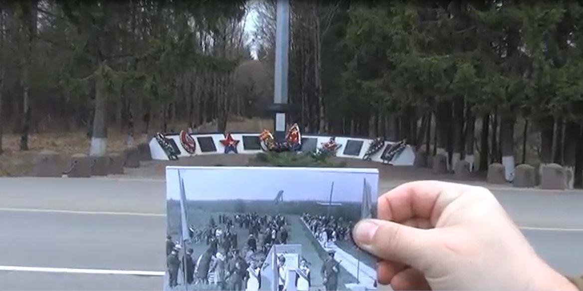 Ну и напоследок - открытие мемориала на том месте, где осенью 41-го остановили немцев. На старом фото ветераны высаживают парк - ну а на новом он уже во всей красе: