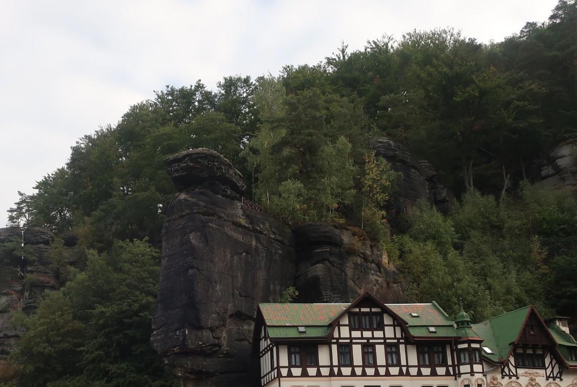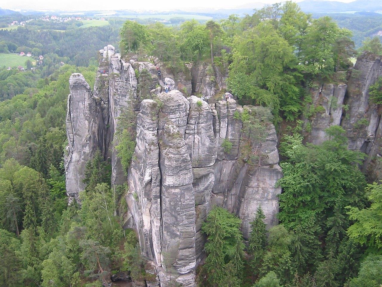 Такие скальные образования, столбы (возвышаются почти на 200 м над Эльбой), похожи на подобные в Метеоре Греция (смотри рассказку "Поездка, о которой я не хотел писать, потому что...").