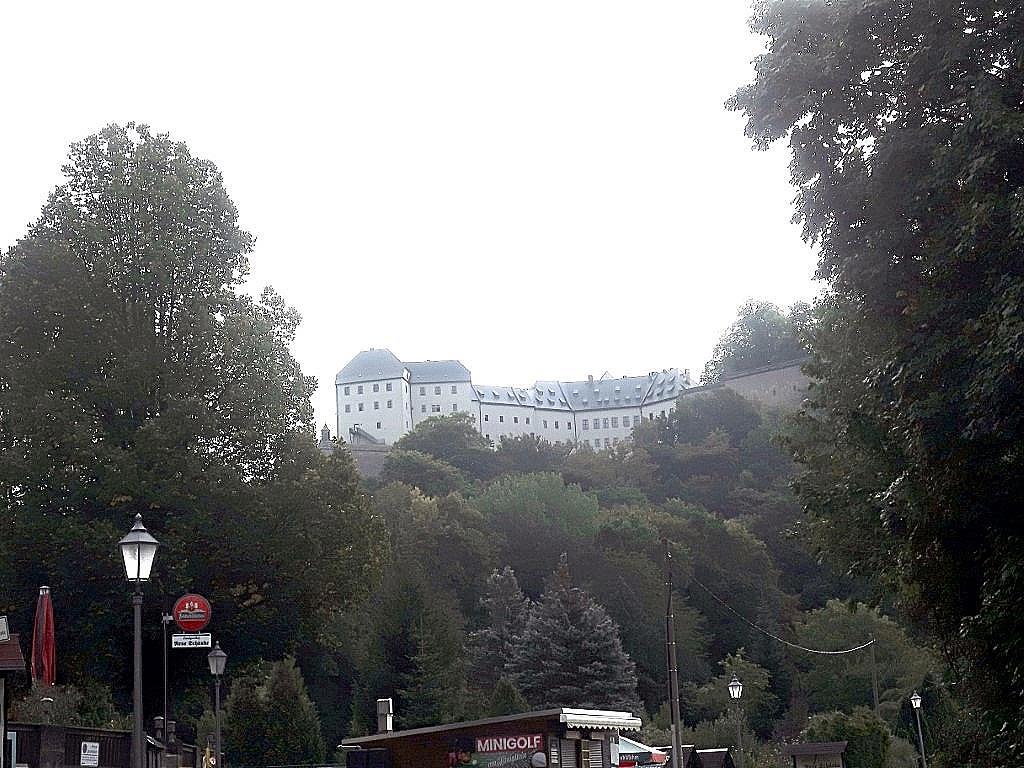 В нашем плане сегодня Koenigstein fortress - крепость Кёнигстейн ("королевский камень"). Первое письменное упоминание о ней - в 1233 году, то есть построена она была раньше.