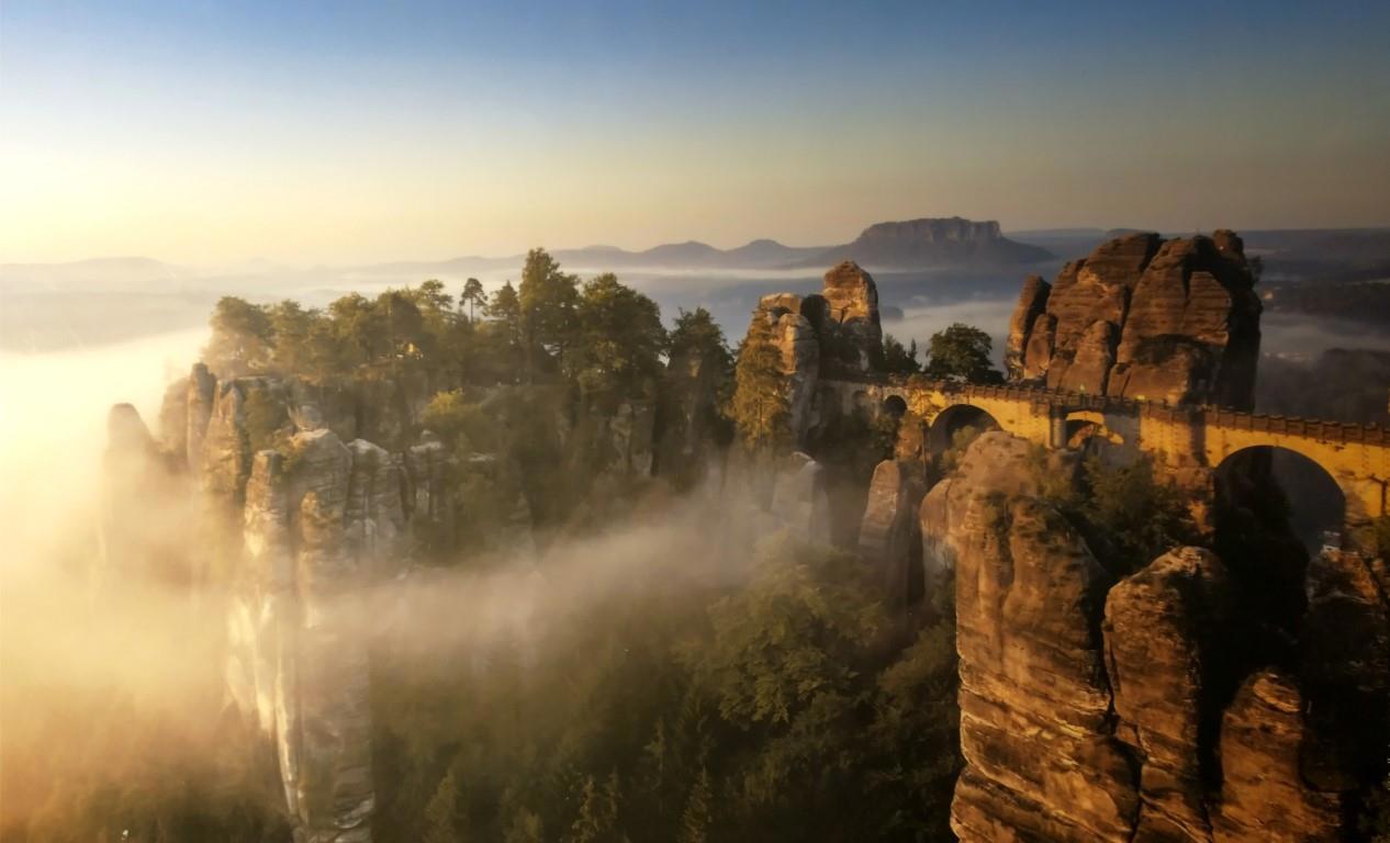 Едем на Бeстеи мост, Национальный парк Саксонской Швейцарии.