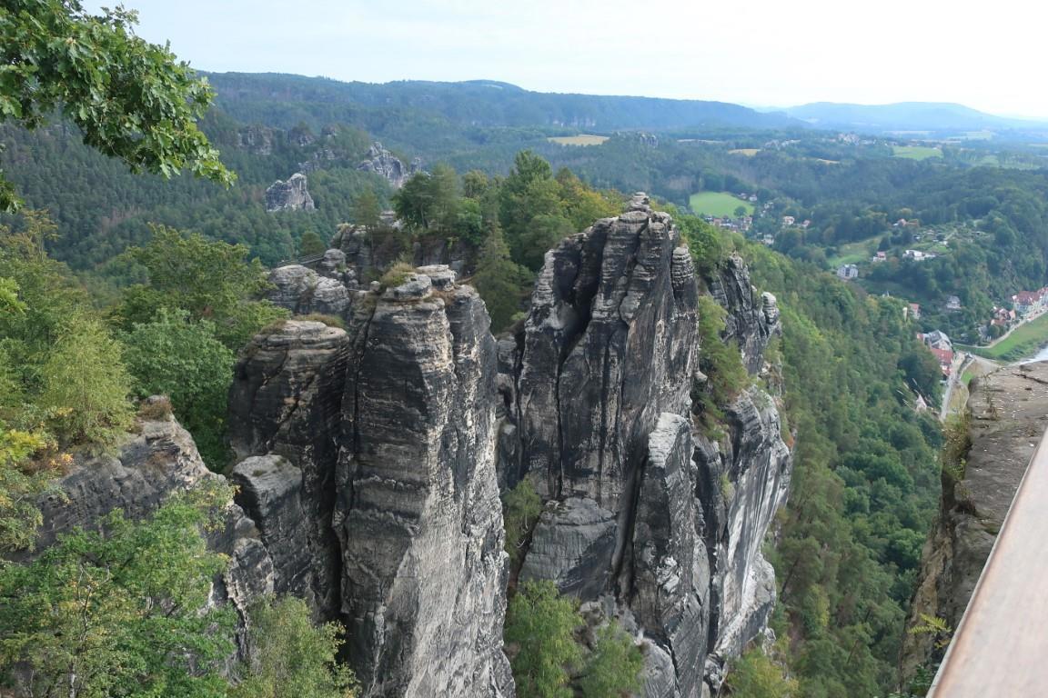 Немцы называют это место Саксонской Швейцарией, и огромное количество туристов (почему-то многие с собаками) приезжают сюда полюбоваться чудесами природы. У природы этот процесс не занял слишком много времени - зубчатые скалы Бeстеи образовались в результате водной эрозии не очень давно – немного более миллиона лет назад.