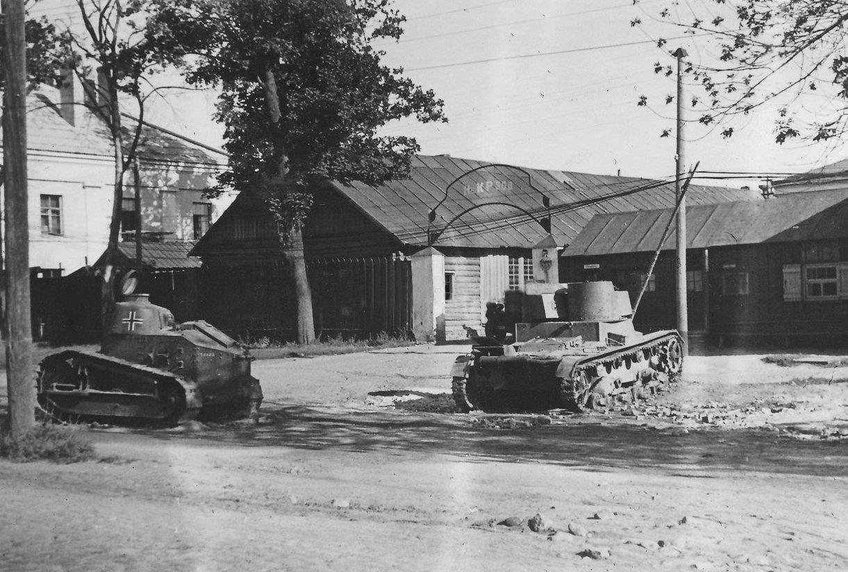 Псков, 1941 год. И да - пулеметный Т-26 против пушечного Рено ФТ не годился.