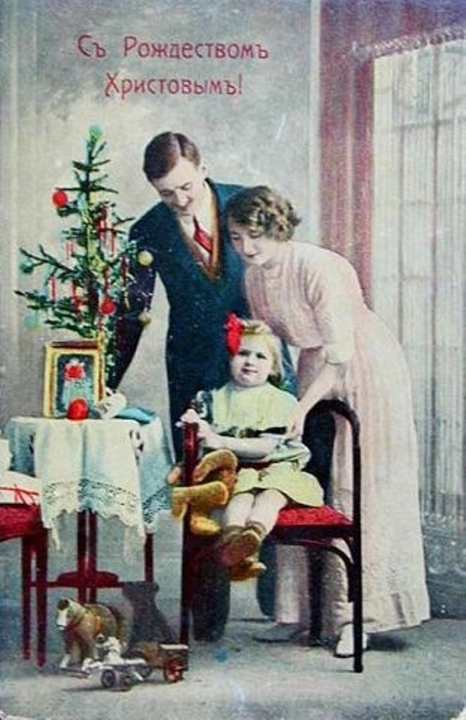 Первые рождественские открытки были выпущены с благотворительной целью Петербургским попечительным комитетом о сестрах Красного Креста (Община святой Евгении) для получения дополнительных средств на содержание больницы, амбулатории и курсов сестер милосердия. К рождеству 1898 года Община св. Евгении издала серию из десяти открыток по акварельным рисункам известных петербургских художников. И хотя на перечисленных выше открытках не было утвердившейся в последующем надписи «С Рождеством Христовым!», они были и по замыслу издателей, и по сюжетам рисунков первыми русскими рождественскими открытками.