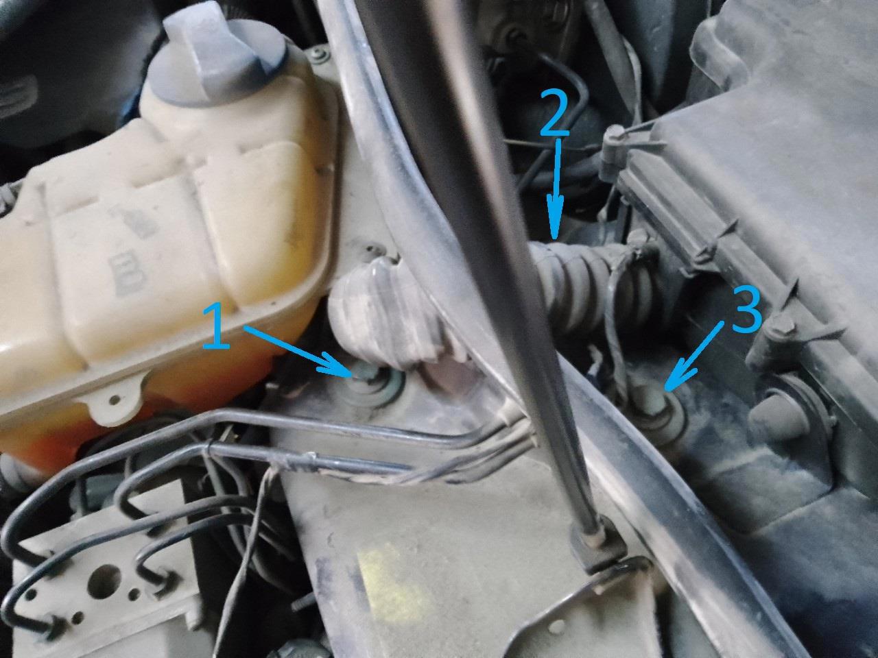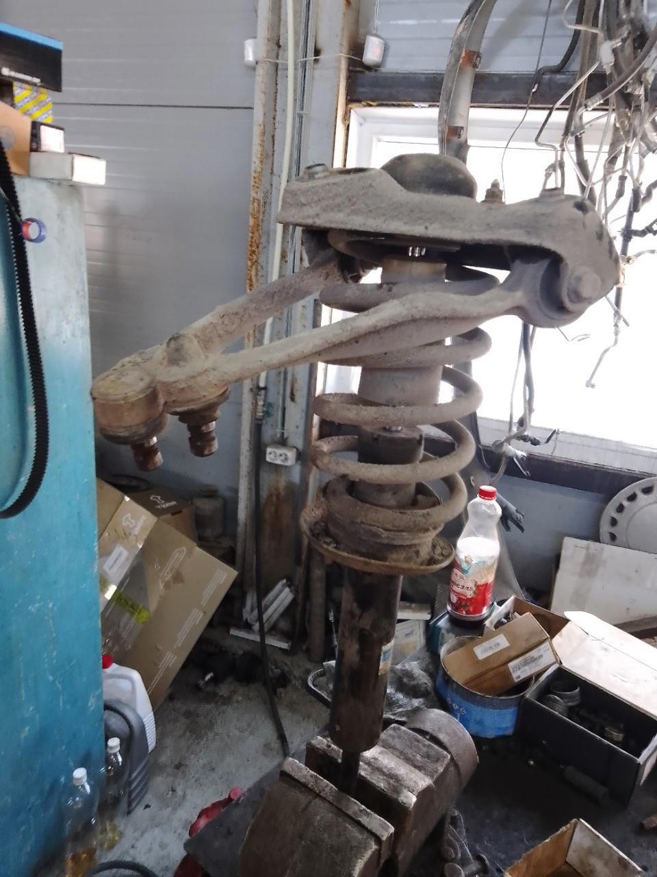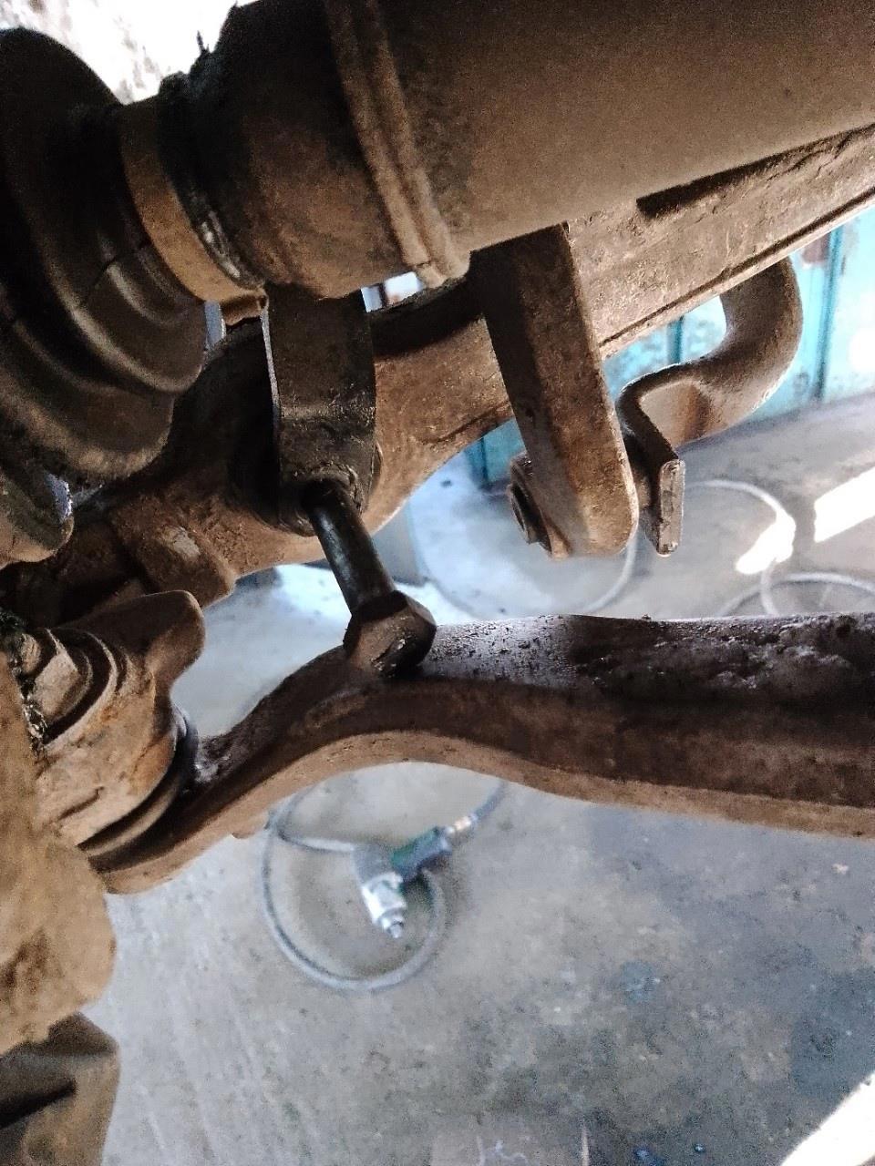 Вот етот. Ага. Тут 5 шаровых на сторону. 2 рычага сверху, 2 снизу, и рулевой наконечник. Ууух! Подарок Гитлера. Самый смех в том, что чтобы снять этот рачаг - надо снять стойку. Иначе не достать болт, который его крепит, ибо он упрется в стакан кузова. Да. Ну а чо? "Я инженер, я так вижу". Благо, снять стойку тут дело не сложное. Три болта сверху...