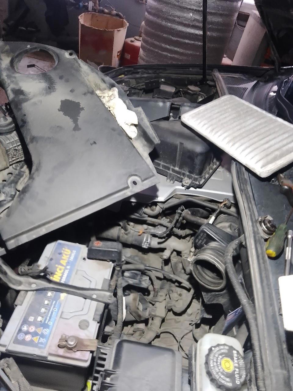 Над раздаткой, в самой жопе. Честно говоря, это меня уже насторожило. Сливаю дерьмище, которое в моторе плюхалось, и снимаю корпус воздушного фильтра, ибо там должен быть термостат.