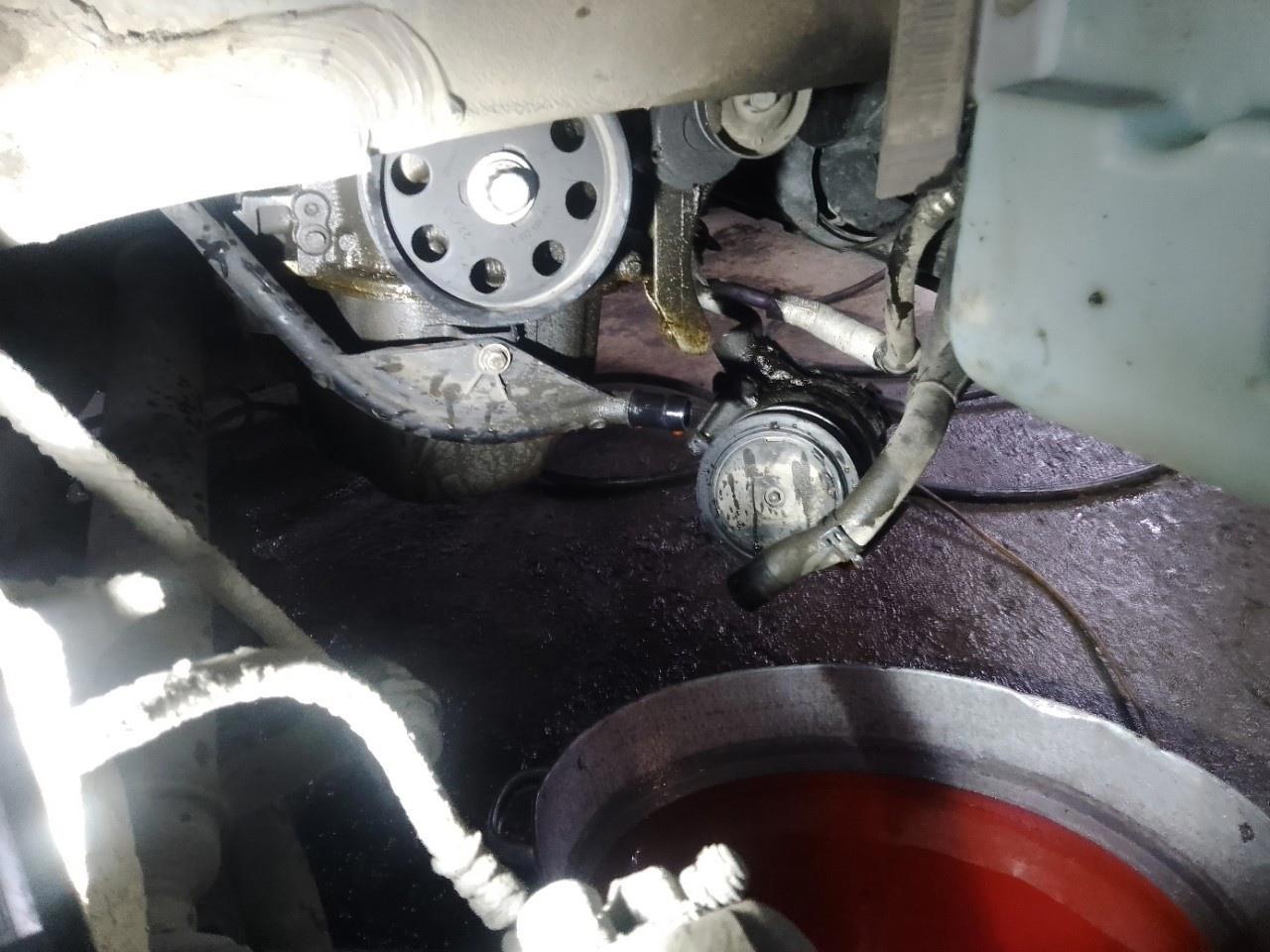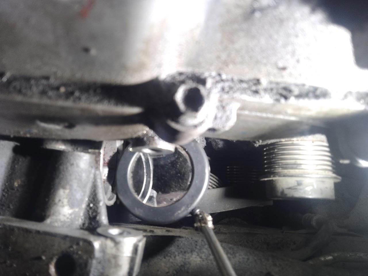 А теперь - вишенка на торте. Готовы? Резинка, в которую термостат вставлен, прилипла к корпусу наглухо, и там и осталась. Подцепить и вычистить её не получилось - нет места. Никак. Вообще! Ничерта туда не лезло!! А если не вычистить начисто - не будет уплотнения и будет течь. Мне захотелось напиться и уволиться, честно. Потому что Чтоб добраться до корпуса термоса, надо снять продольную опору, кроншейнт, и только тогда увижу доступ к корпусу. А теперь нежданчик - кронштейн достается только если поднять мотор. Там есть длинный болт, который не выходит. Этот кронштейн держит мотор от опрокидывания, и он прикручен на 7 (СЕМЬ!!!!) болтов!1! Кронштейны, которые держат мотор от падания вниз на меньшее количество болтов прикручены!! И из-за дефицита места откручивать его писец как муторно и долго...