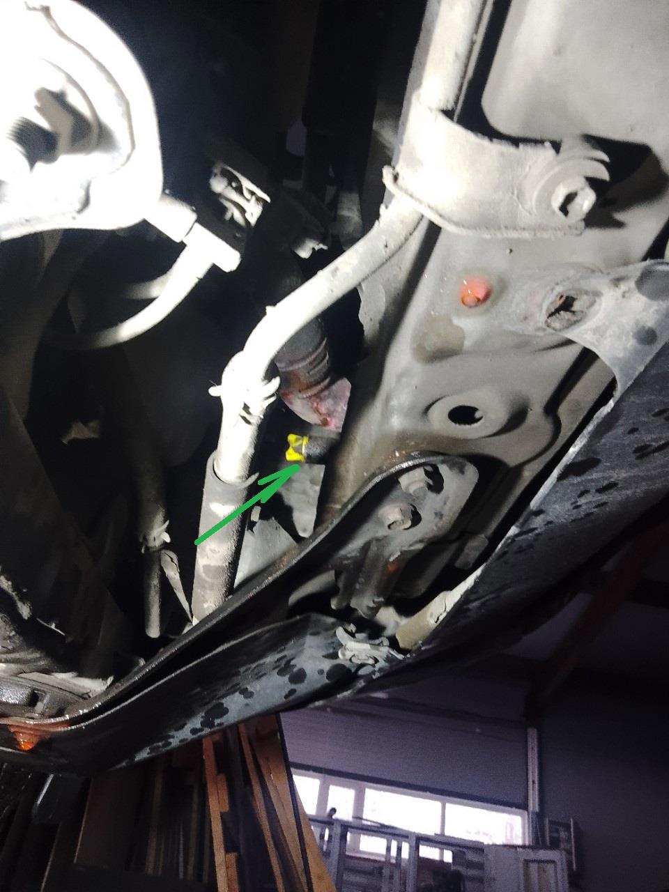 Термоэкран не выходит: мешает лямбда, которая вкручена в дырку в термоэкране. Но, лямбда открутилась норм. Термоэкран всё равно не вышел. мешает трубочка, которая идет вверх около стрелки. Но и открутив трубку экран не вышел. Ему мешает генератор. Ладно, его всё равно снимать. Но и потом экран не вышел. Мешают вентиляторы охлаждения ДВС. Но, хотя бы отодвинулся. Надо снять ремень навесухи, лезем под правое переднее колесо.