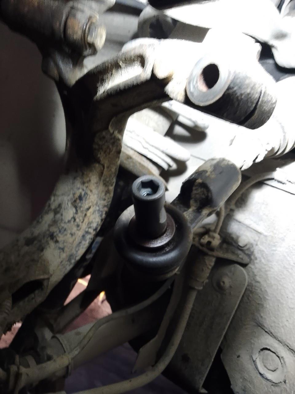 А это - шаровая рулевого наконечника. Она фиксируется болтом сбоку в ухе кулака, и прикручена ещё болтом сверху! При этом, в ней сверху есть выемка под шестигранный ключ, чтоб шар крутить, чтоб боковой болт попал в прорез. Надежность фиксации уровня "насмерть".