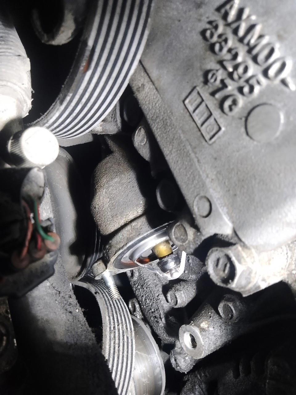 Быстрый поиск в интернете показал, что да. Термостат там. И достать его оттуда просто только если вынуть мотор. Потому что иначе там мешается ВСЁ. Вообще ВСЁ!1 Этот гребанный фланец прикручен 2 гайками, одну из которых ещё относительно видно, только потрогать не получится, а вторая между фланцем и блоком!! И чтоб до неё долезть, надо снять ремень навесухи, и обводной ролик, и тогда, только тогда (!) можно до неё добраться удлиннителем определенной длинны, и по чуть-чуть отворачивать, потому что нормально повернуть ключ нет места! Это п?*:%ц. Я понимаю, когда вижу такое в Хонде или Фольксвагене, но эти-то куда? Кто это придумал? Зачем? С какой целью?7 Ведь сзади полно места, и можно разместить термостат там! Почему нет?? Что... кто... ПОЧЕМУ???