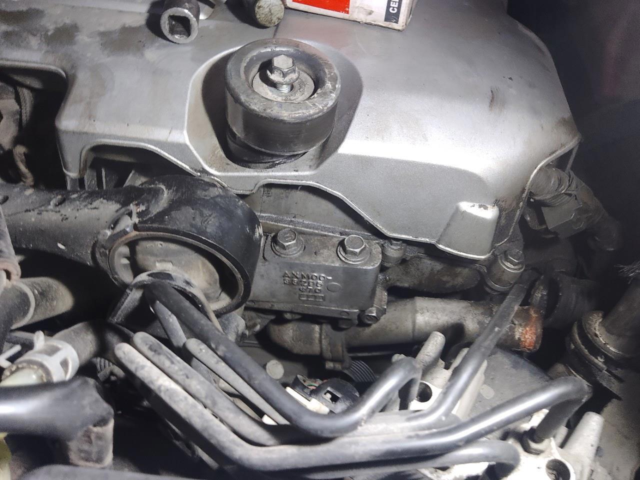 И всё бы ничего, жизнь вроде бы налаживается, но тут с утра звонят по Фольксвагену Нью Битл, на котором я когда-то давно менял цепь ГРМ, и говорят что он грохочет шопистец, и надо бы там посмотреть, вдруг я что-то плохо собрал. Ага. Выясняется, что цепь меняли 20 000 км назад, а значит моего косяка там нет 100%. Окей. Притаскивают, проверяем уровень масла - норма. Кто-то его туда налил, но кто - никто не признается. Узнаю, что куда-то там в дргуое место оно приехало без масла, и с грохотом. Ну, это не удивительно, ибо у него натяжитель цепи натягивает цепь от давления масла. Давления нет - цепь не тянется, мотор грохочет. Масло у него сбегало, и это говорилось давно, бежало оно через прокладку кронштейна генератора (да, там есть прокладка, ибо на это кронштейне стоит масляный фильтр и охладитель). Заодно решили посмотреть цепь.